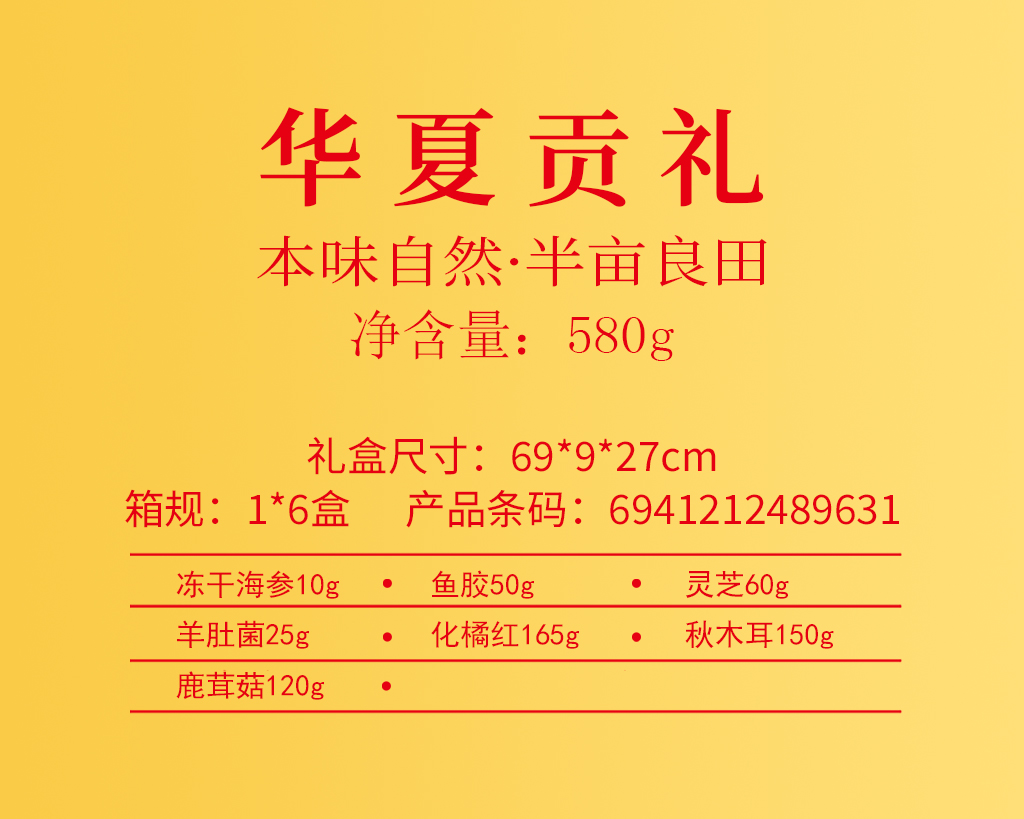半亩川 山珍海味海参鱼胶灵芝羊肚菌礼盒 华夏贡礼礼盒 580g 混色(单位:盒)