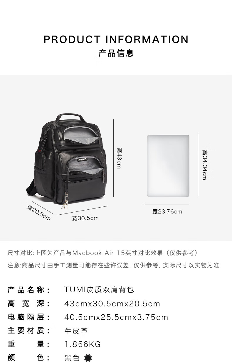 途明(TUMI) Alpha3男士双肩包旅行商务电脑包电脑包 09603580DL3 43cmx30.5cmx20.5cm 黑色(单位:个)