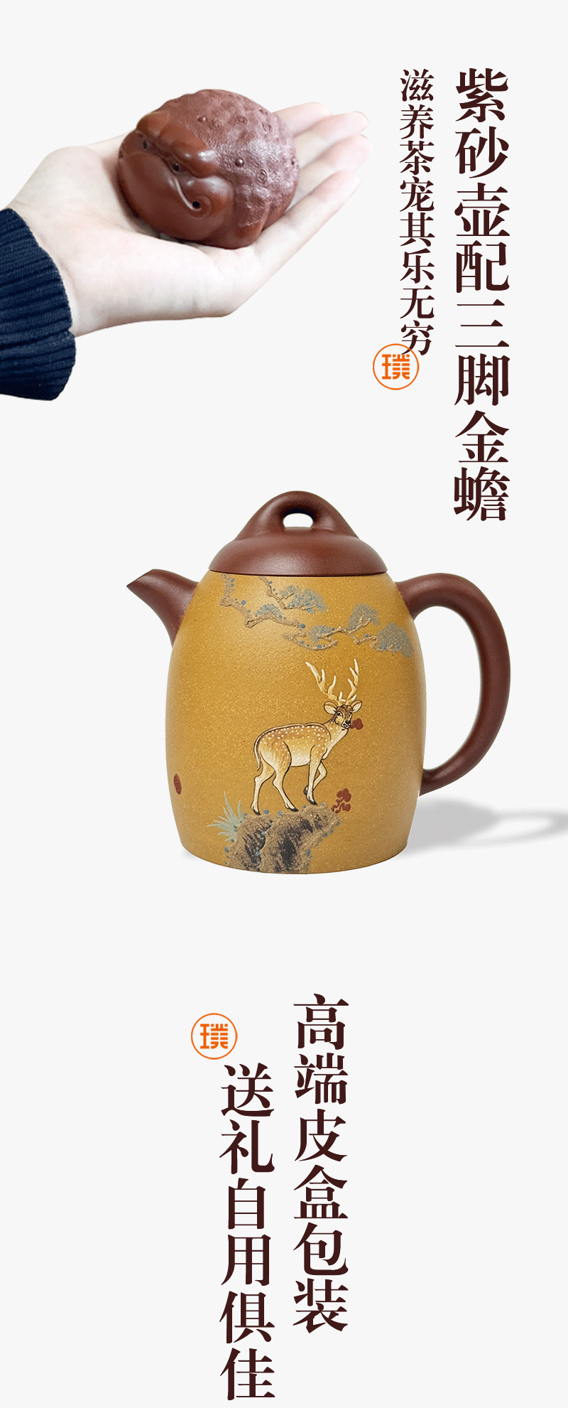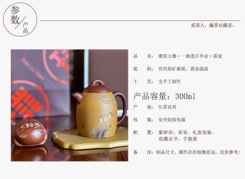 璞实茶器 茶宠茶壶套装 一鹿连升 300ml 紫砂(单位:套)