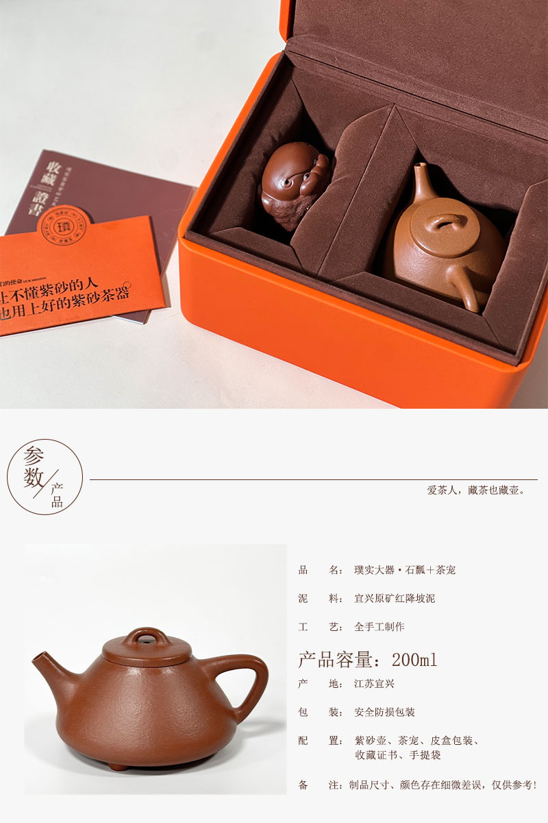 璞实茶器 茶壶茶宠套装 石瓢 200ml 紫砂(单位:套)