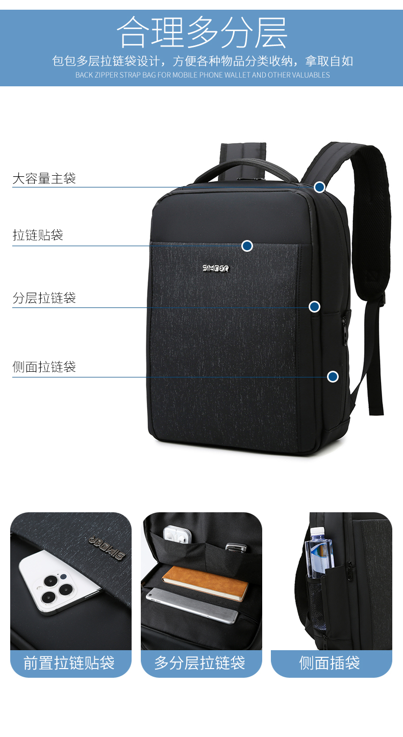 斯莫尔(SIMOER) SL-6016商务休闲办公书包电脑包背包 SL-6016 31*17*41CM 黑色(单位:个)