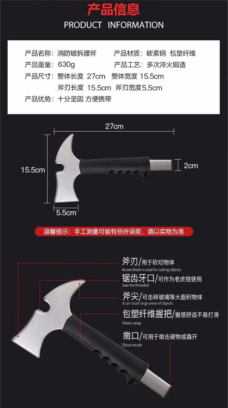 虎鲸安 消防破拆腰斧 HJ-YF 27*15.5cm 黑色(单位:把)