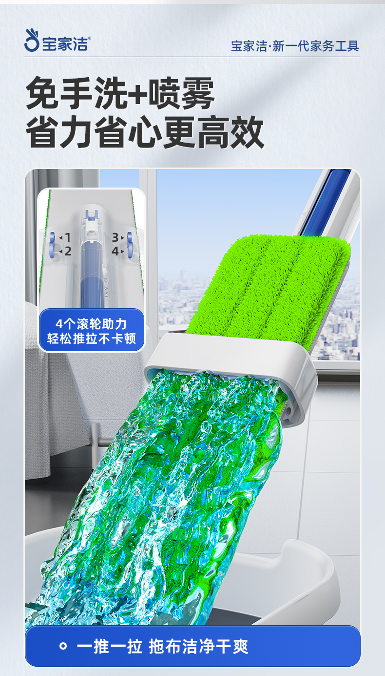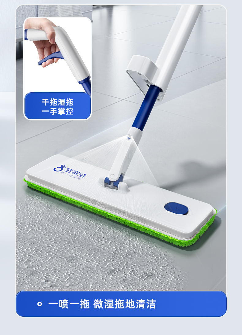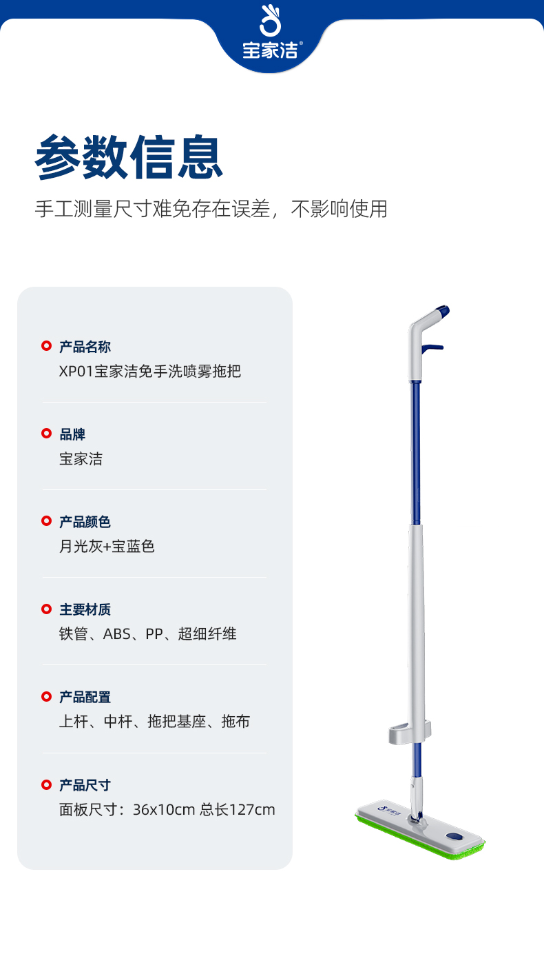 宝家洁(BAOJIAJIE) 免手洗喷雾拖 XP01 拖把*1,替换拖布*2 绿色(单位:个)