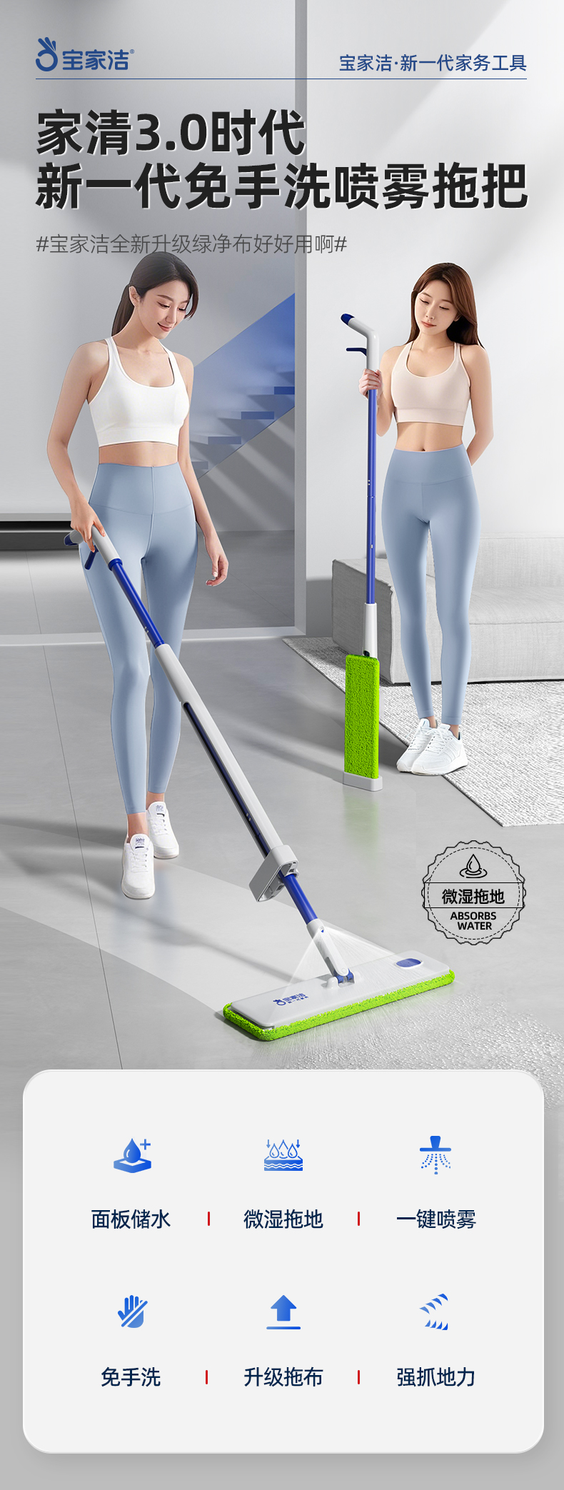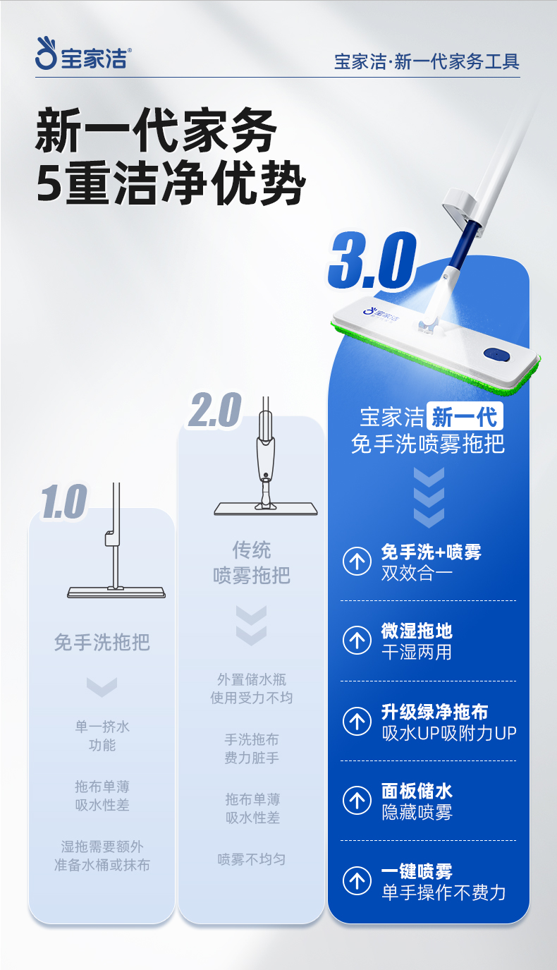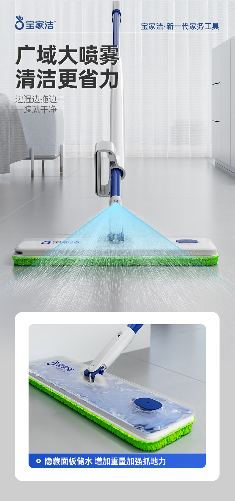 宝家洁(BAOJIAJIE) 免手洗喷雾拖 XP01 拖把*1,替换拖布*2 绿色(单位:个)