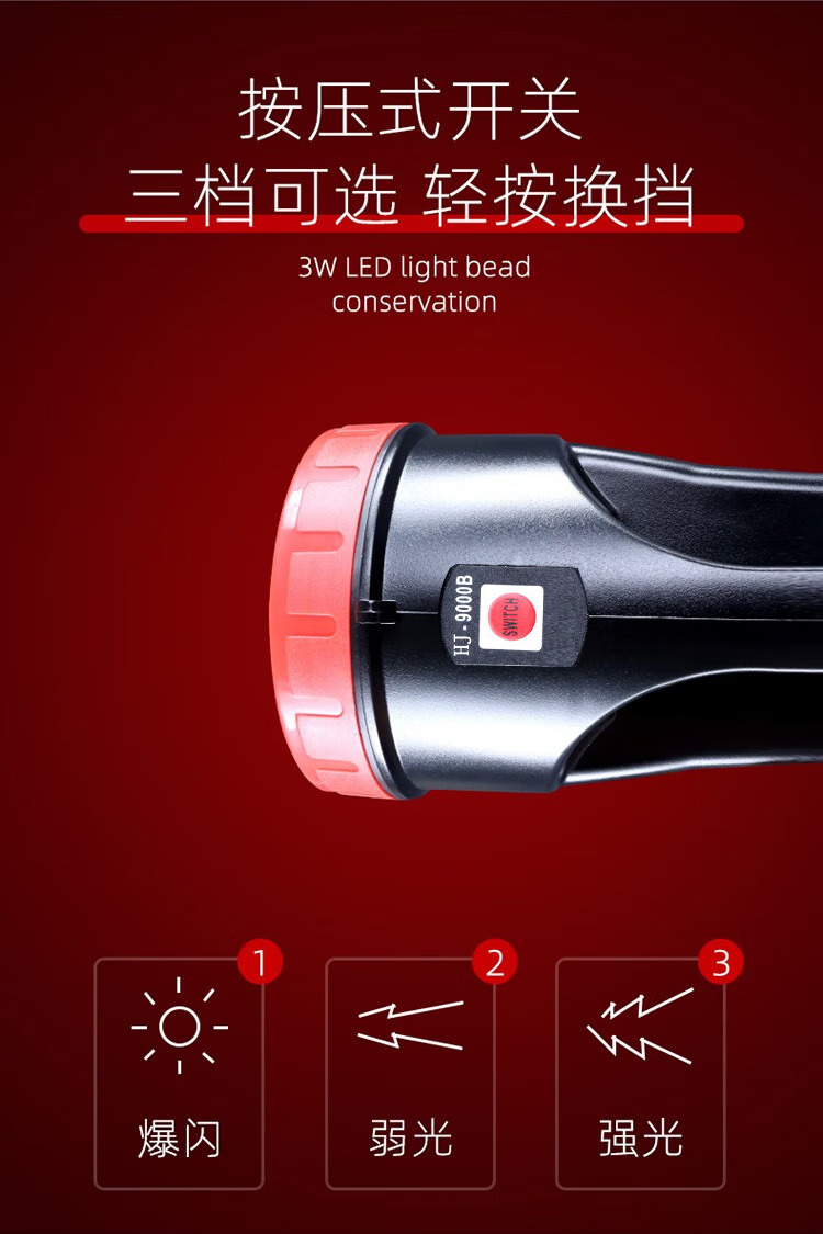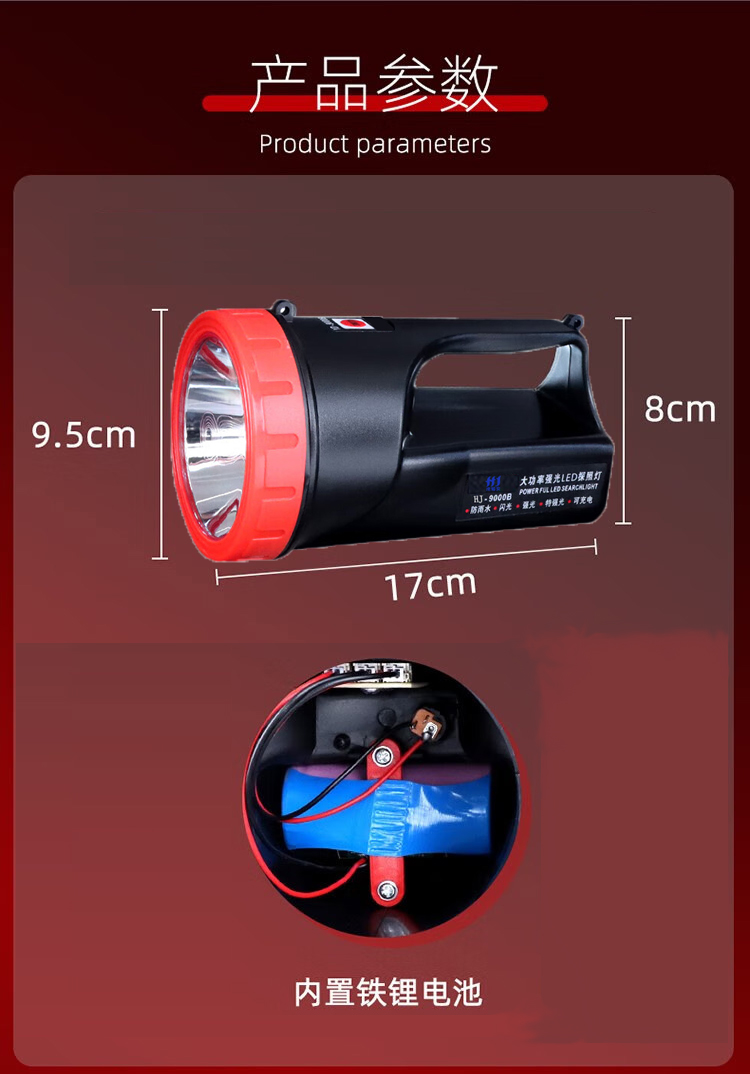 虎鲸安 强光手电 YD-9000B 17*9.5*8CM 黑色(单位:把)