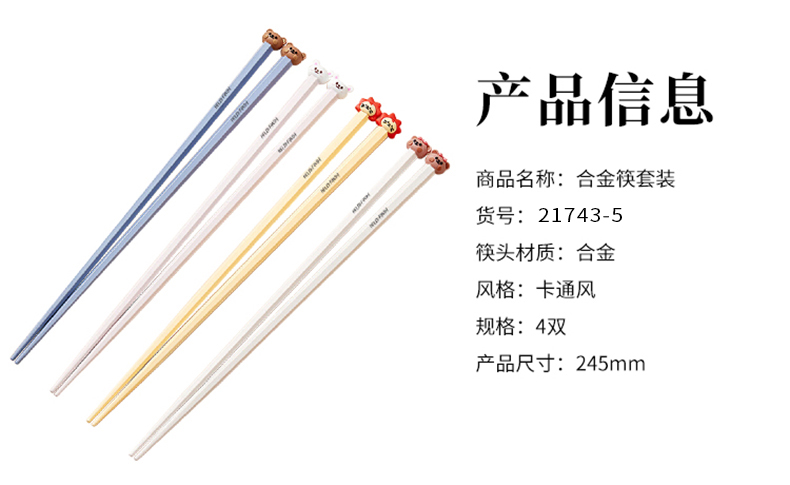 沃德百惠 G21743-5 合金筷套装 4双装(单位:套) 混色