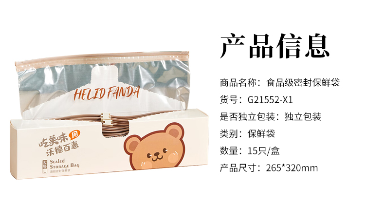 沃德百惠 G21552-X1 食品级密封保鲜袋(单位:盒) 白色