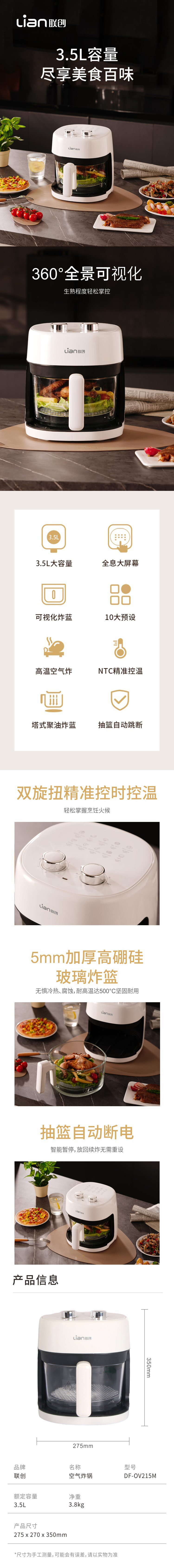 联创(LIAN) 联创空气炸锅 DF-OV215M 3.5L 白色(单位:台)