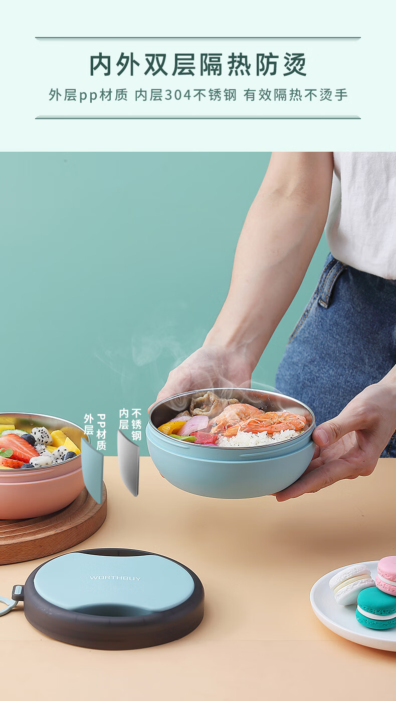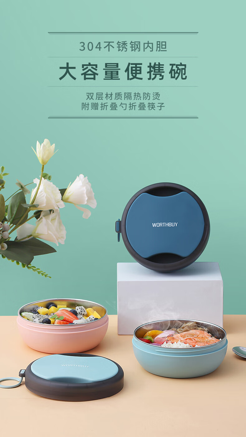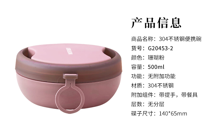 沃德百惠 G20453-2 304不锈钢便携碗(单位:个) 珊瑚粉