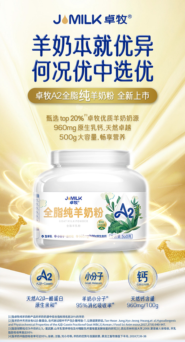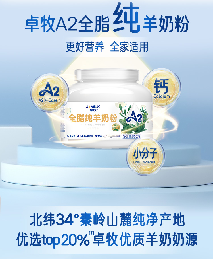 卓牧(JOMILK) A2全脂纯羊奶粉 JM-08 500g 白色(单位:罐)