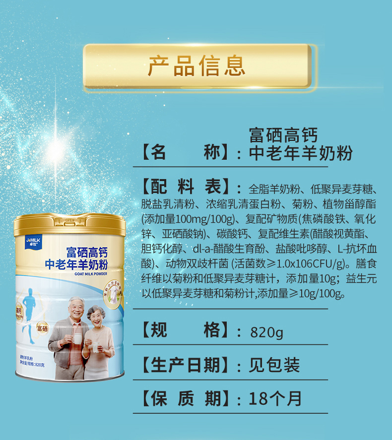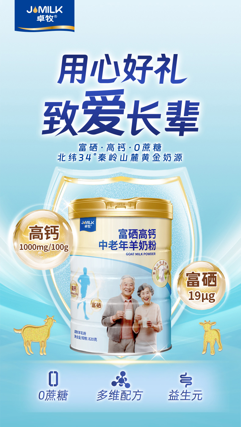 卓牧(JOMILK) 富硒高钙中老年羊奶粉 JM-09 820g 金色(单位:罐)