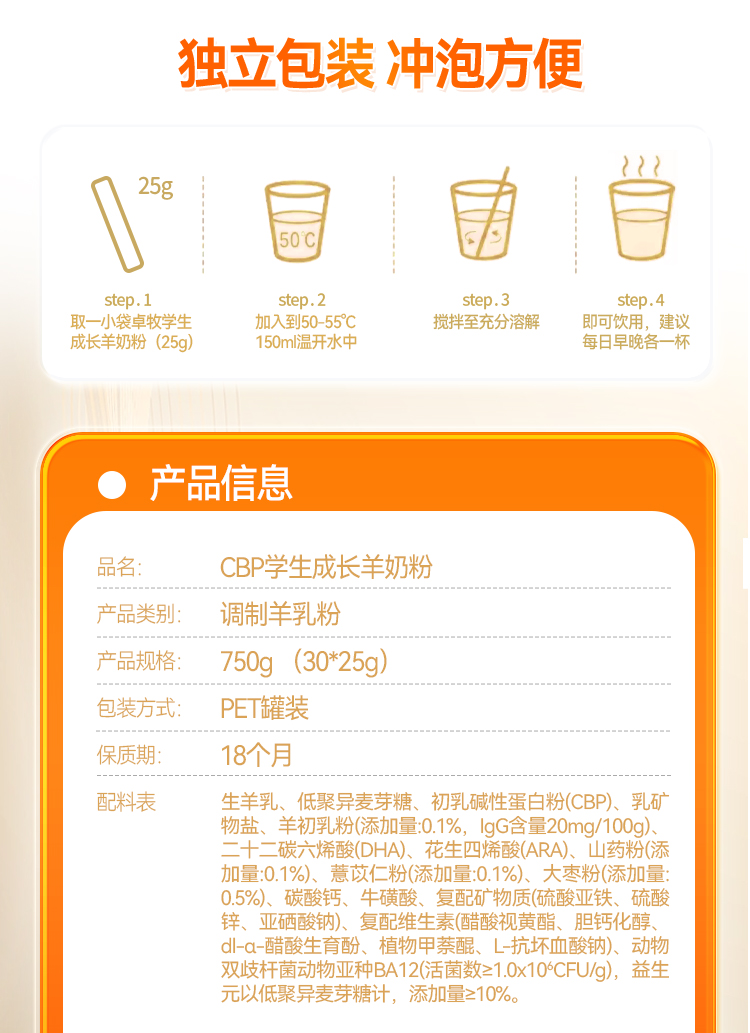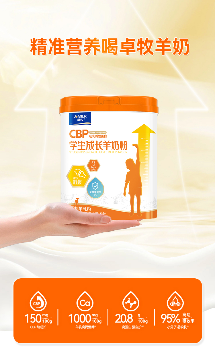 卓牧(JOMILK) CBP学生成长羊奶粉 JM-15 750g 橙色(单位:盒)