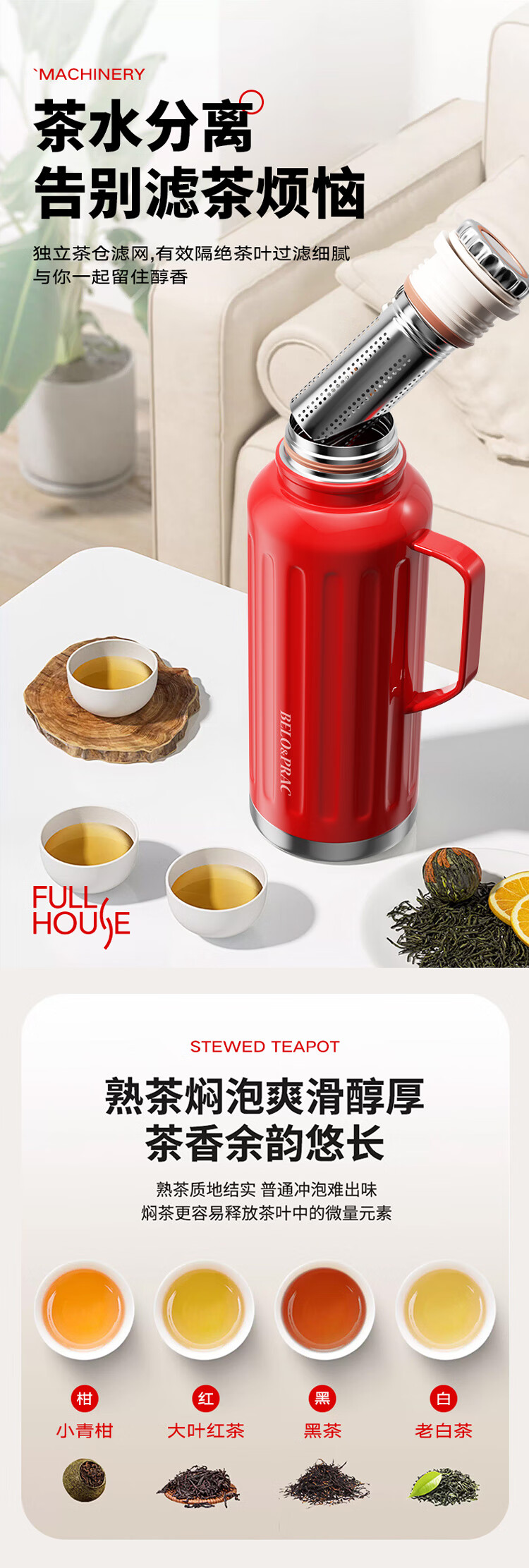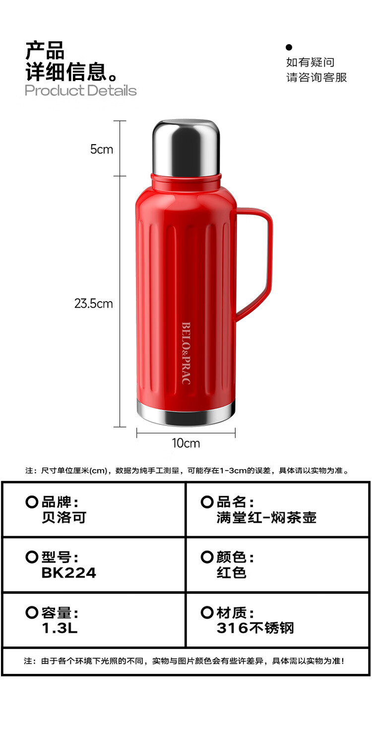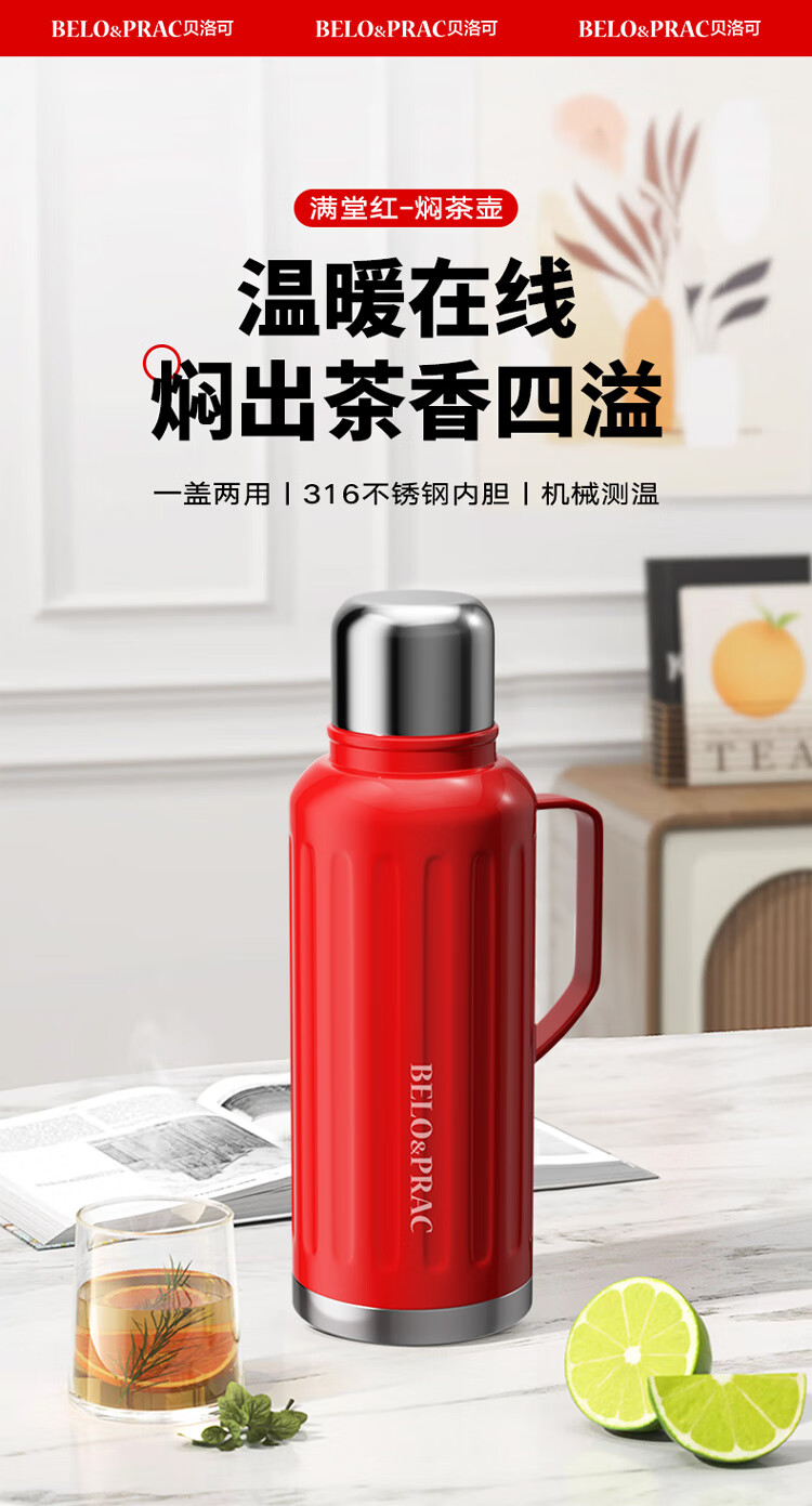 贝洛可(BELO&PRAC) 满堂红-焖茶壶 BK224 1300ml 红色(单位:个)