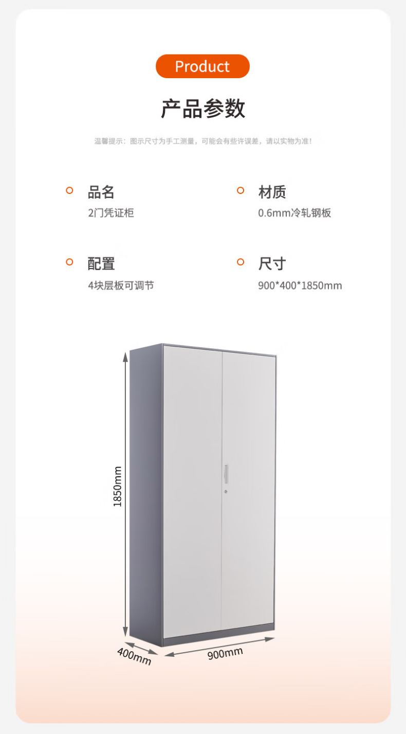 企诺 文件柜钢制办公档案柜二门凭证柜 QA075 900*400*1850mm 灰白色(单位:台)