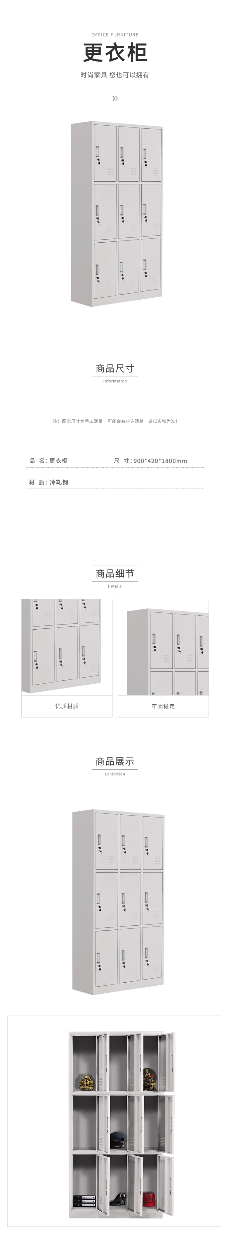 企诺 更衣柜储物柜文件柜九门 QB007 900*420*1800mm 0.4mm 灰白色(单位:个)