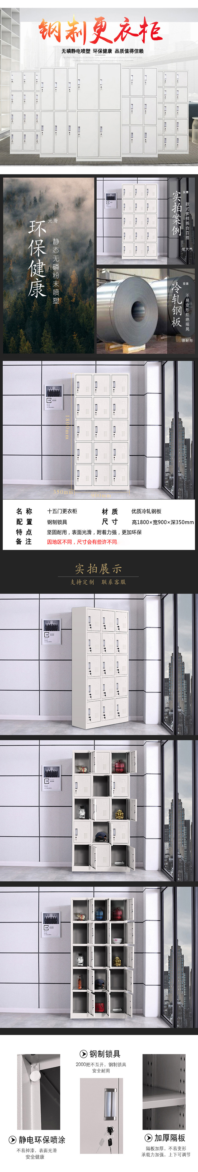 企诺 更衣柜储物柜文件柜十五门 QB008 900*350*1800mm 0.4mm 灰白色(单位:个)