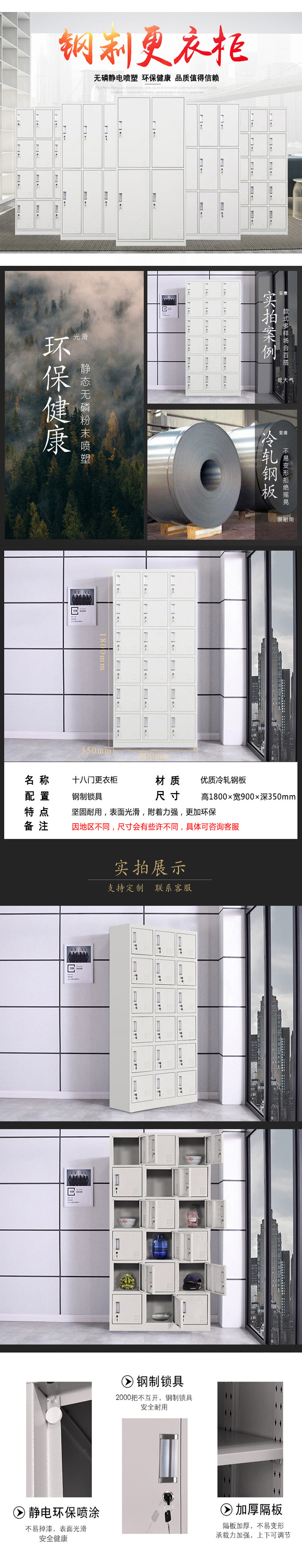 企诺 更衣柜储物柜收纳柜十八门 QB012 900*350*1800mm|0.4mm 灰白色(单位:个)