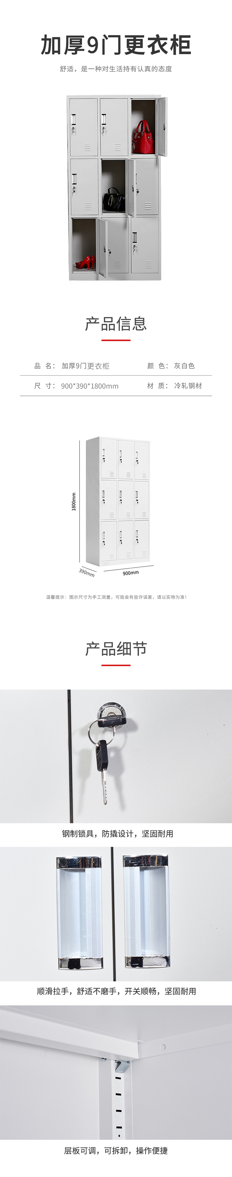 企诺 更衣柜储物柜文件柜九门 QB019 900*420*1800mm 0.6mm 灰白色(单位:个)