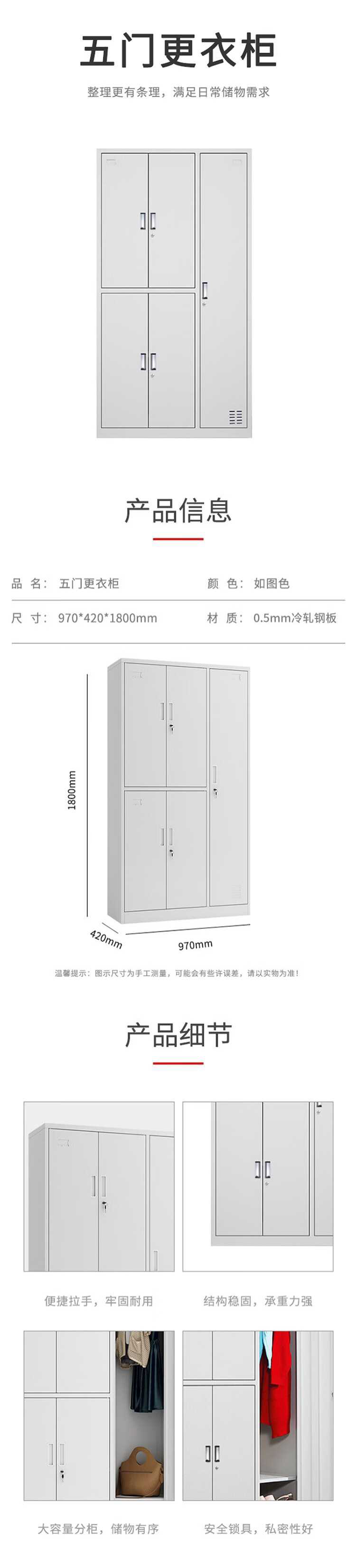 企诺 更衣柜铁皮柜加厚五门 QB021 970*420*1800mm 灰白色(单位:个)