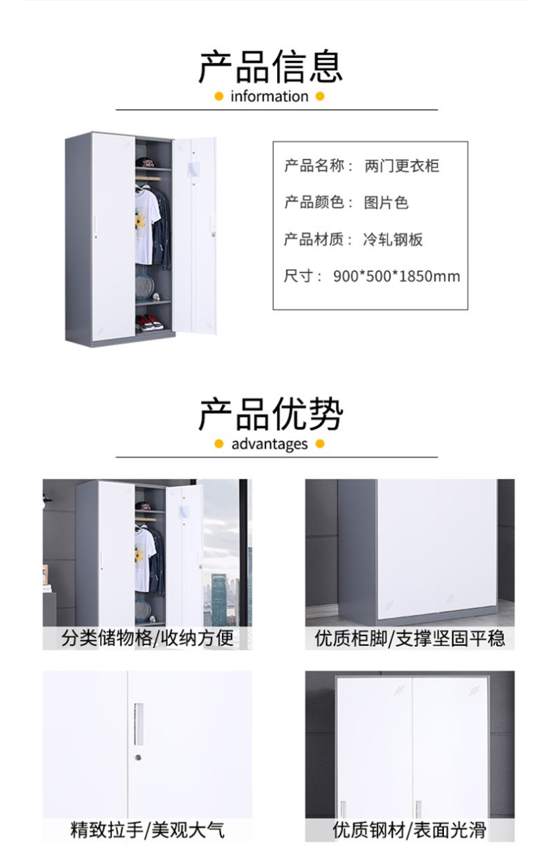 企诺 更衣柜套色加厚二门 QB032 900*500*1850mm 灰白色(单位:个)
