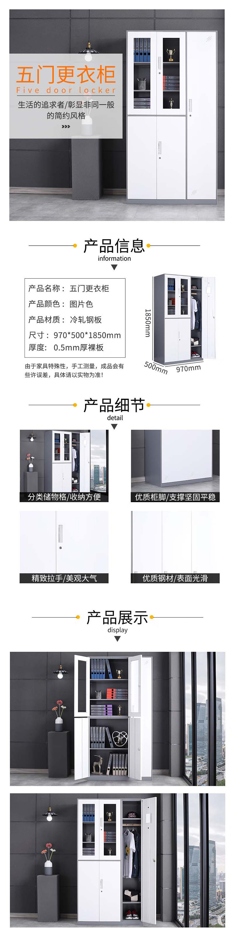 企诺 更衣柜套色加厚五门 QB035 970*500*1850mm 灰白色(单位:个)