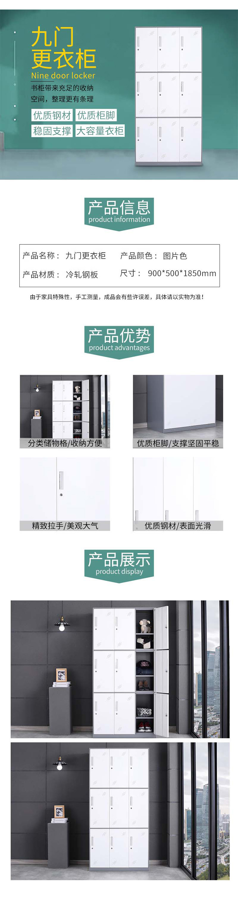 企诺 更衣柜套色加厚九门 QB037 900*500*1850mm 灰白色(单位:个)