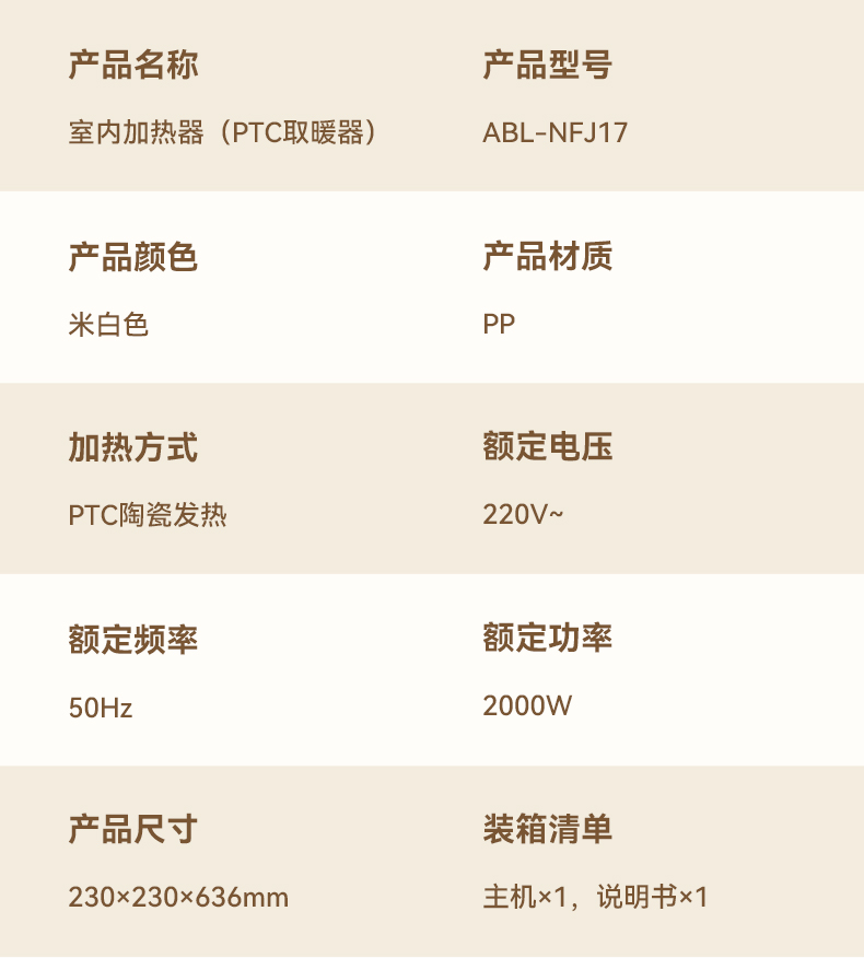 艾贝丽(Abereve) 机械款暖风机 ABL-NFJ17 ABL-NFJ17 2000W 白色(单位:台)