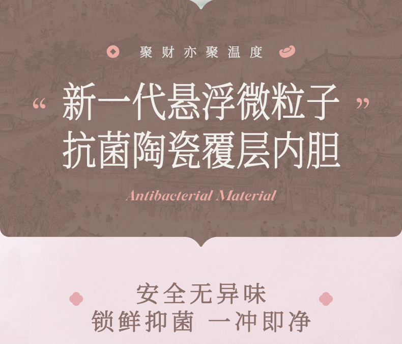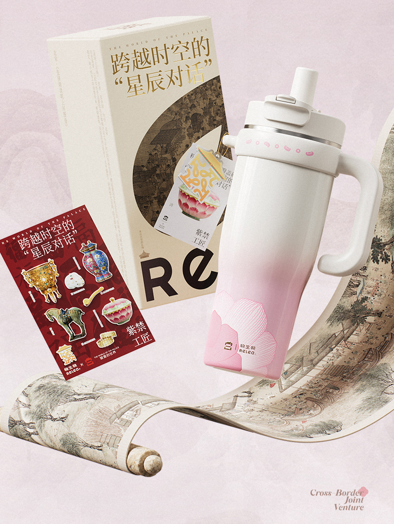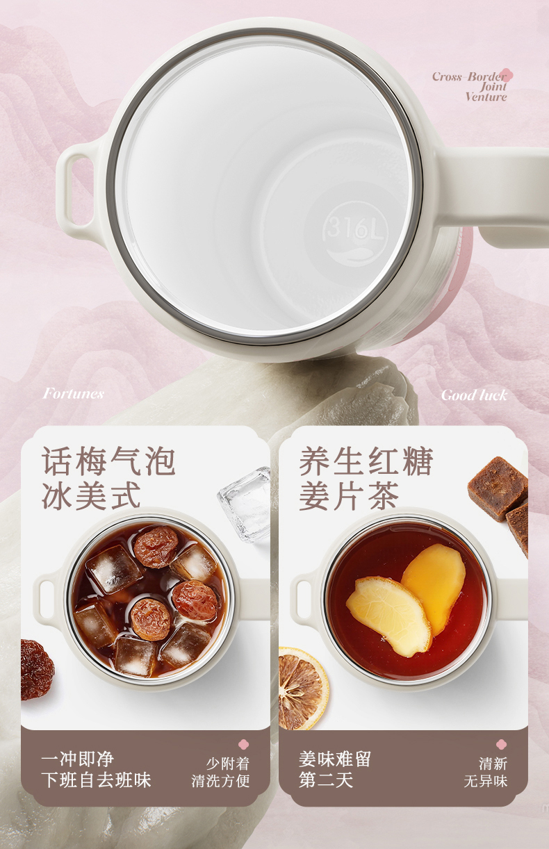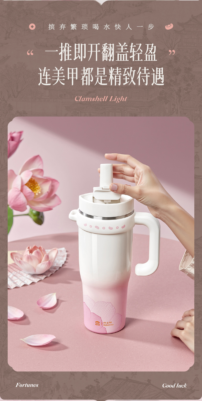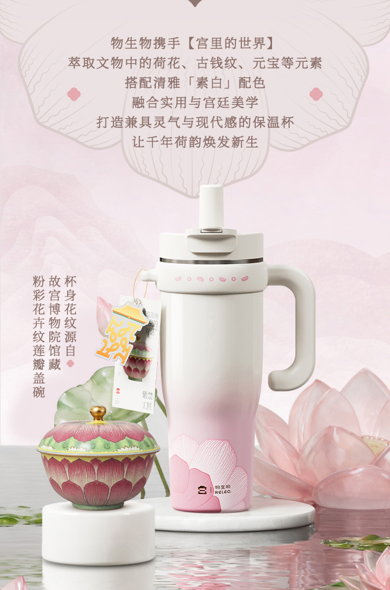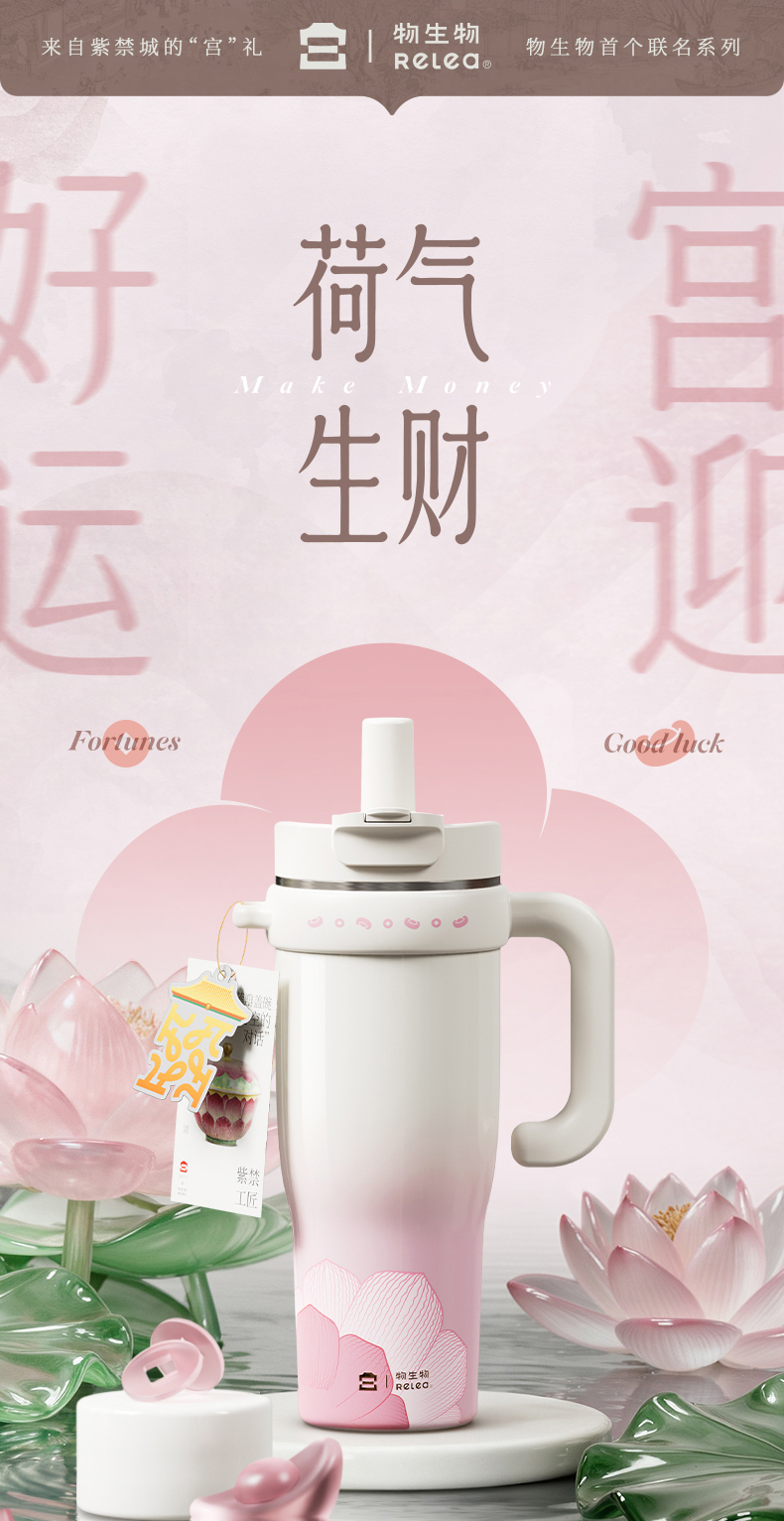 物生物(RELEA) 大力水守陶瓷内胆保温杯把手款 JV012566-1300-FQ00 1300ML 荷气生财(单位:个)