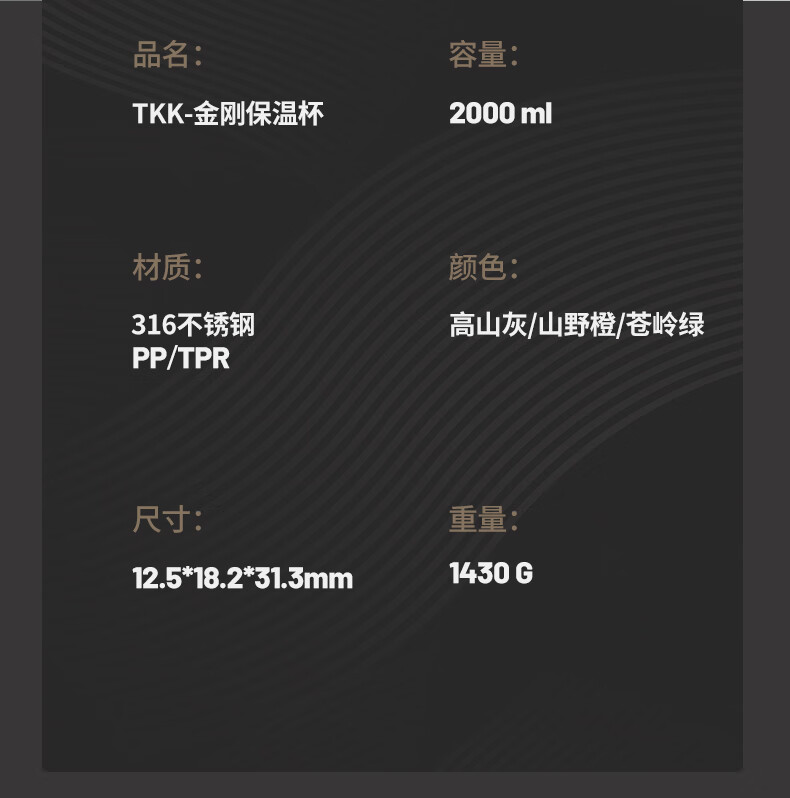 TKK 金刚大容量保温壶 TKK2013 2000ml 灰色(单位:个)