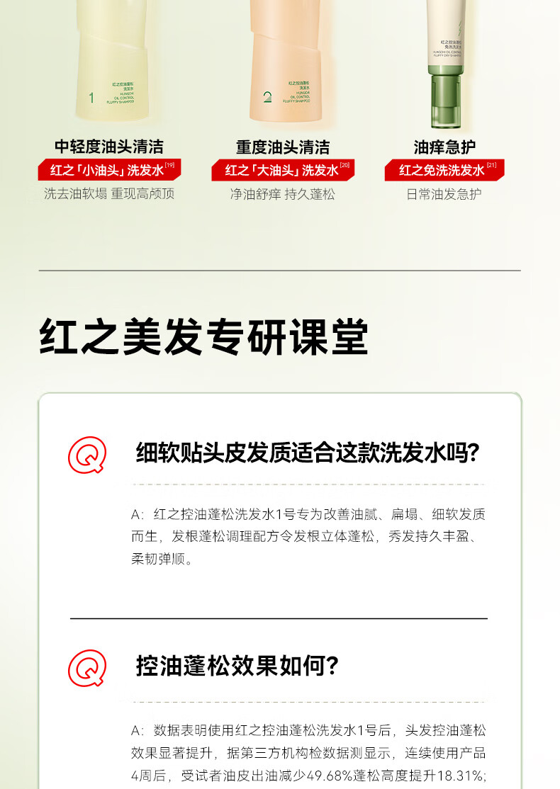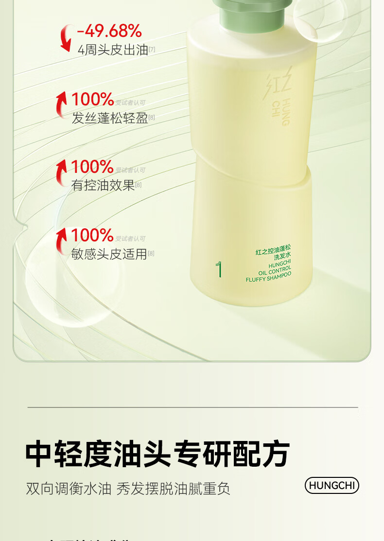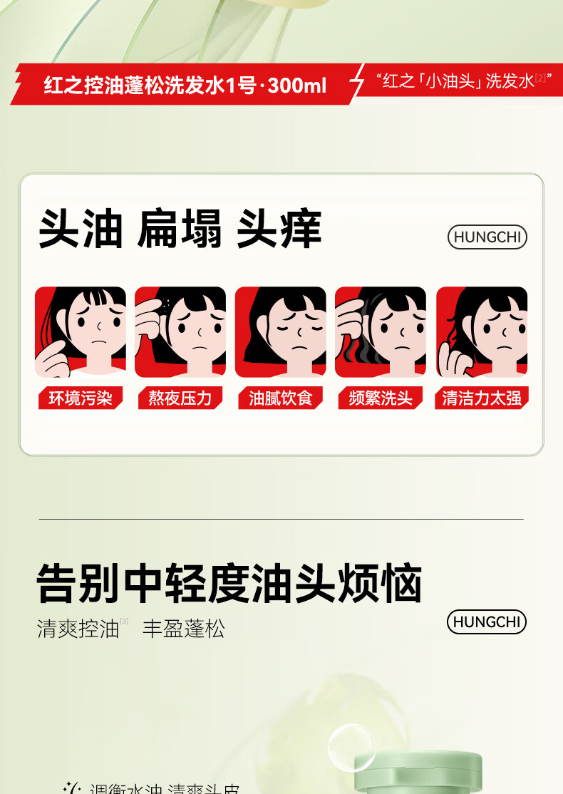 HUNGCHI 红之 控油蓬松洗发水 1号-小油头 300ml 绿色(单位:瓶)