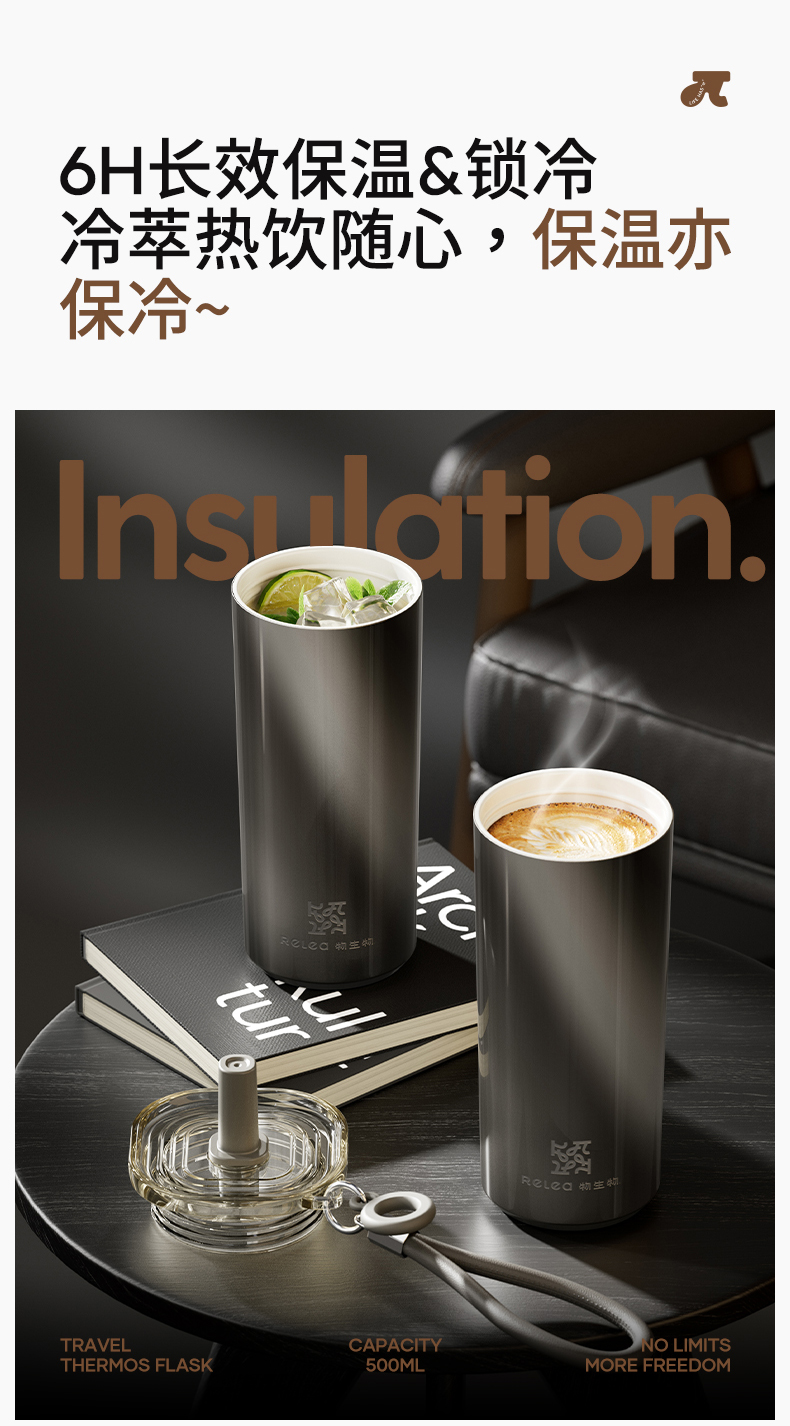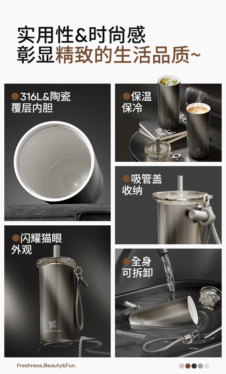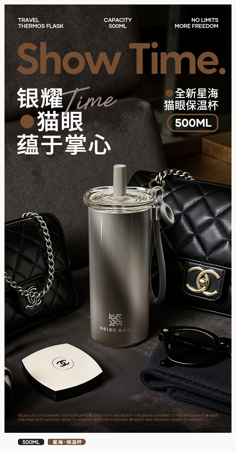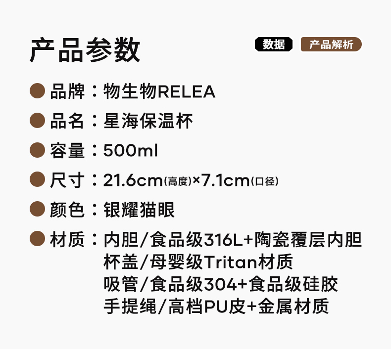 物生物(RELEA) 星海陶瓷内胆保温杯 JV012546-0500-US00 500ML 银耀猫眼(单位:个)