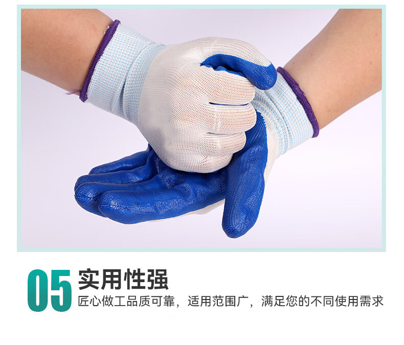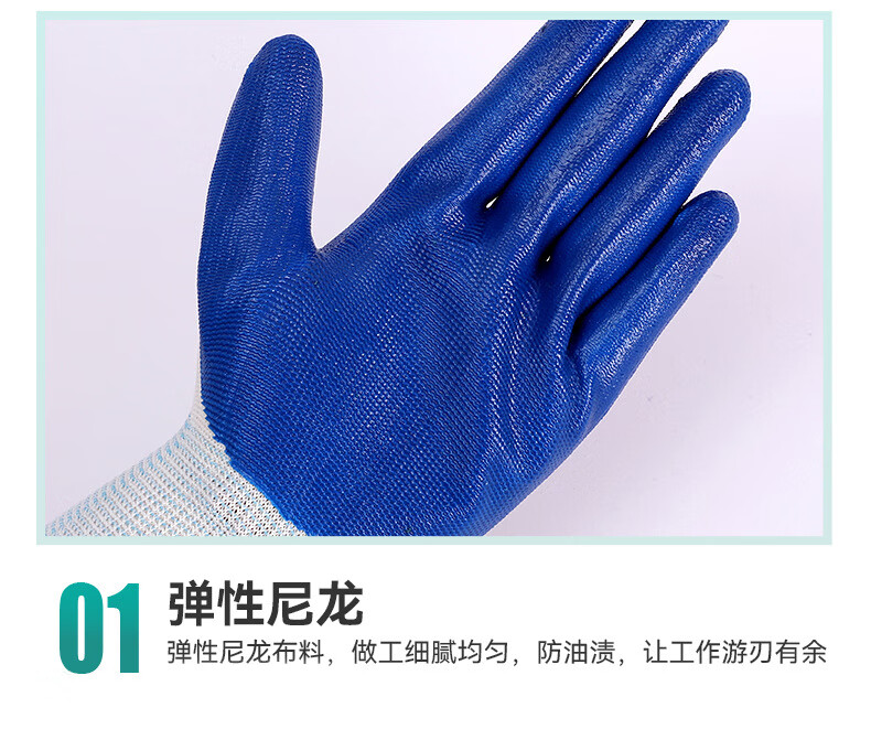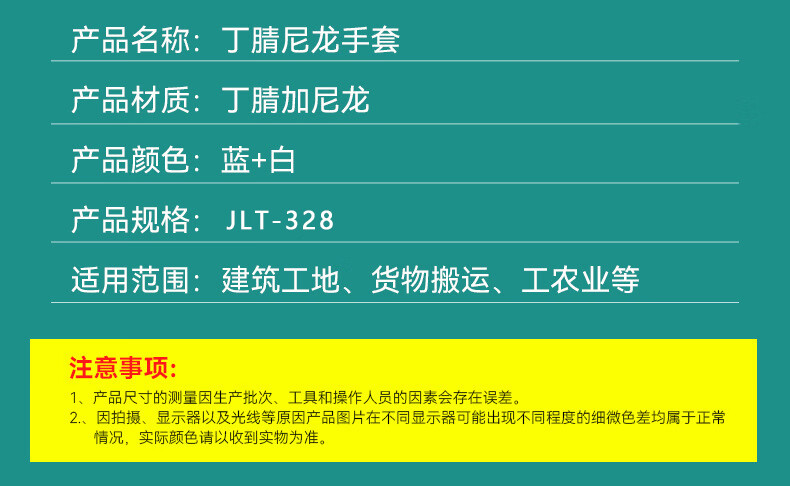 京狼途 丁腈尼龙手套 JLT-ST004S 10双 蓝白色(单位:包)