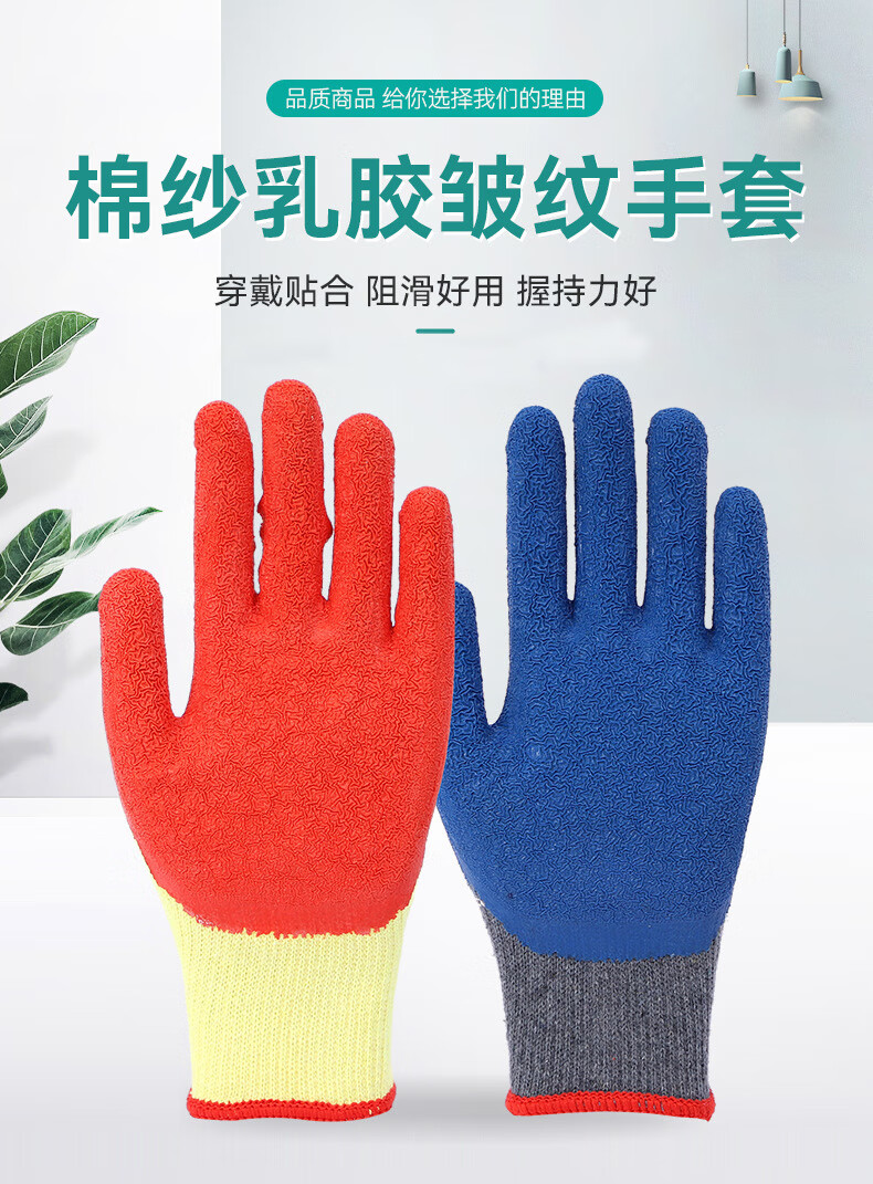 京狼途 耐磨防滑浸胶皱纹手套 JLT-ST005S 10双 混色(单位:包)
