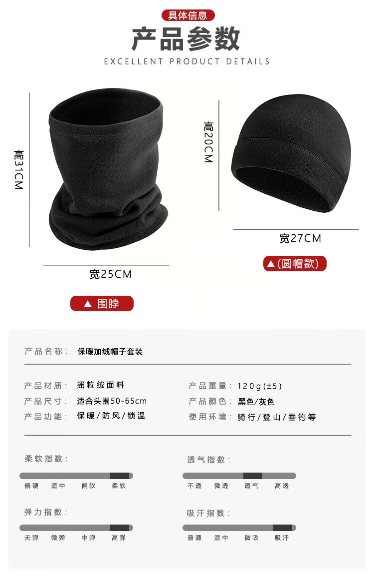 京狼途 保暖加绒帽子套装 JLT-FH004 120g 黑色(单位:套)