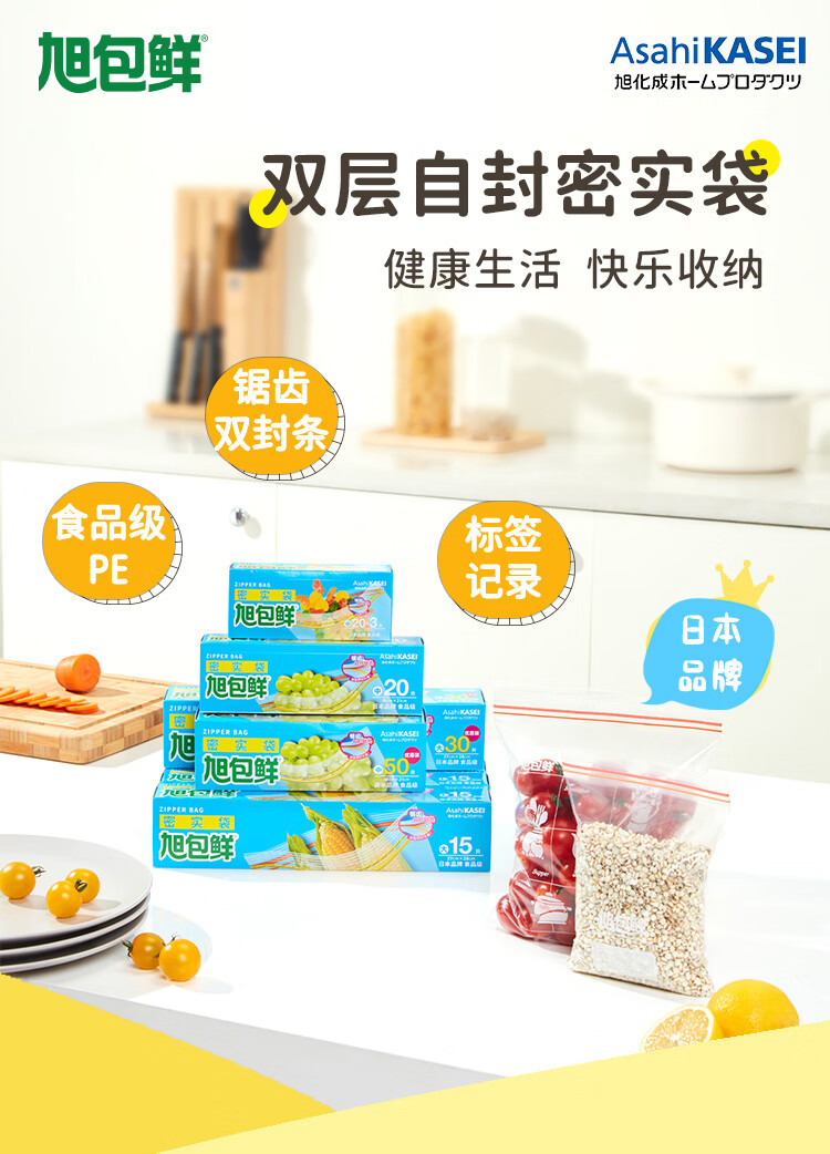 旭包鲜 ®密实袋 大号 27cm×28cm15只装*3包 透明色(单位:组)