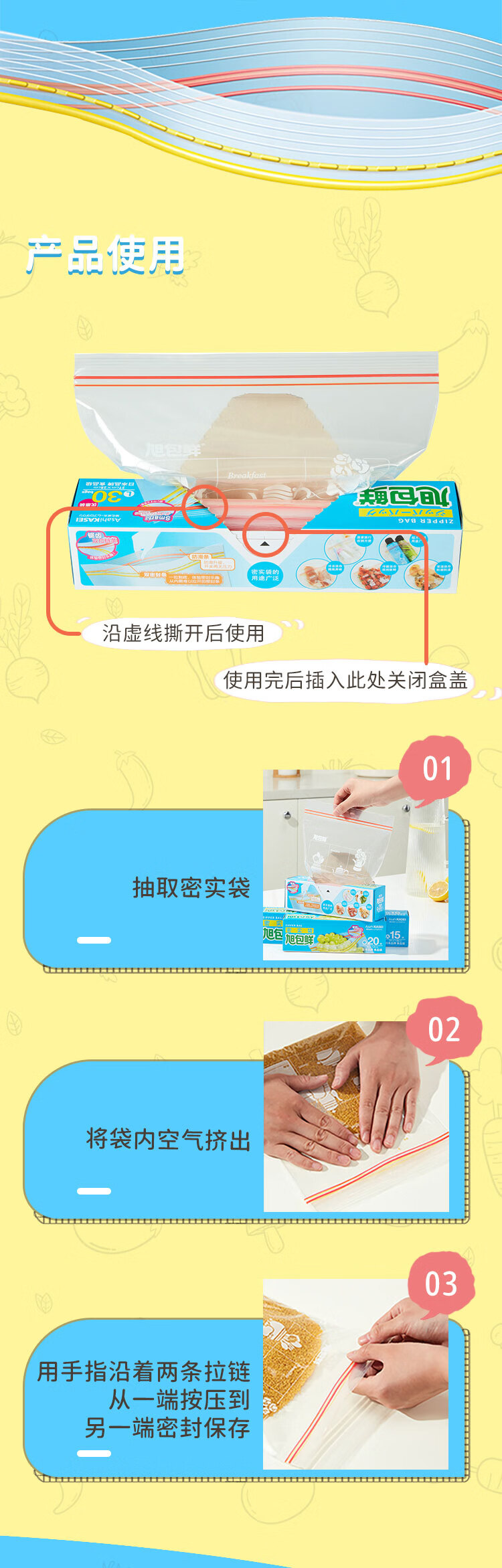 旭包鲜 ®密实袋 小号 13cm×17cm23只装*3包 透明色(单位:组)