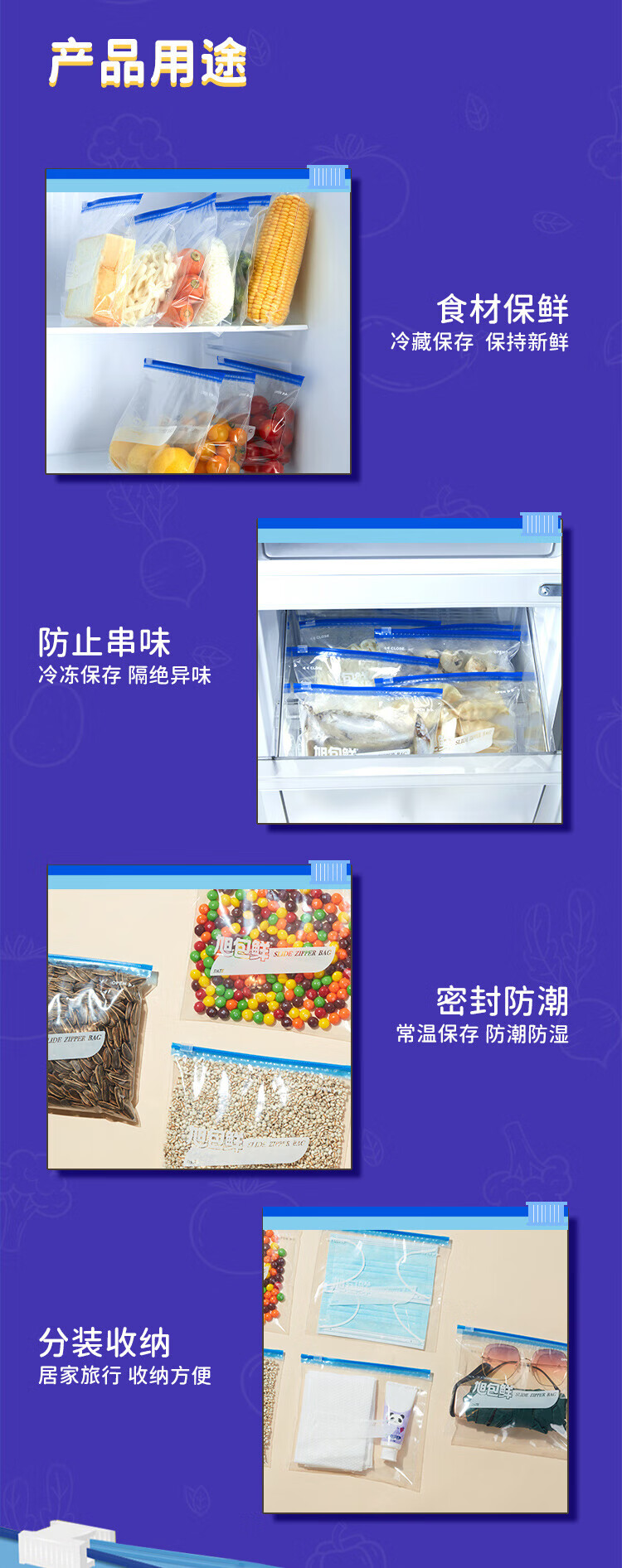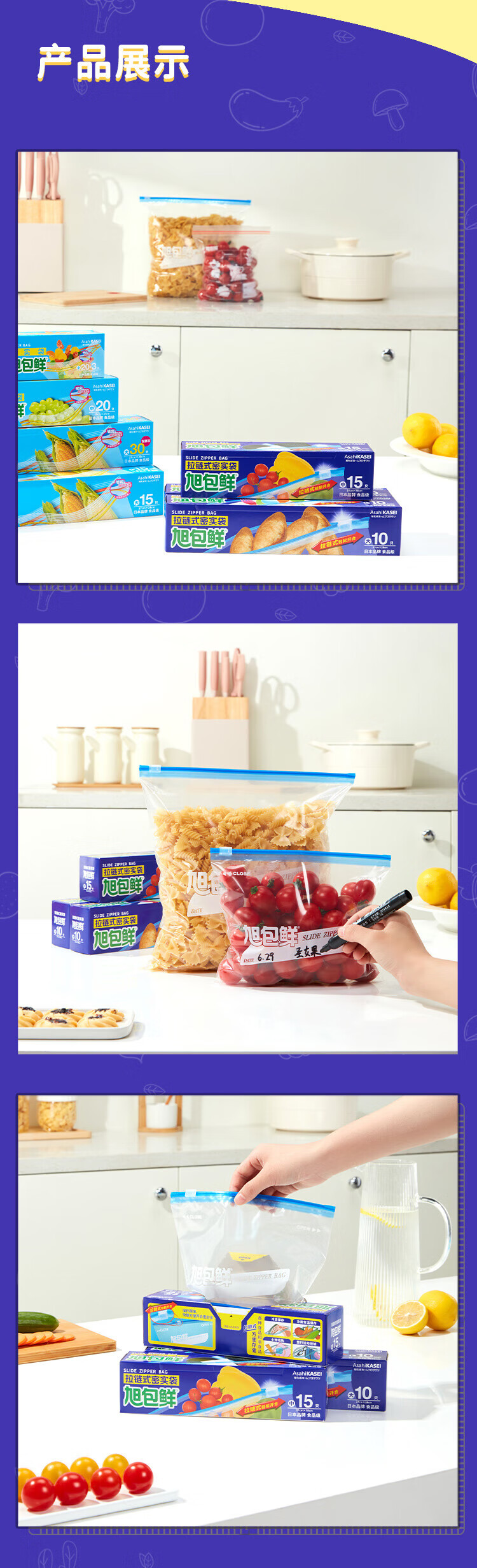 旭包鲜 ®拉链式密实袋 大号 27cm×28cm10只装*3包 透明色(单位:组)