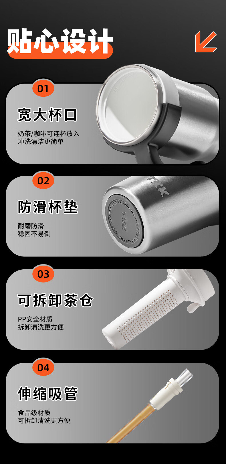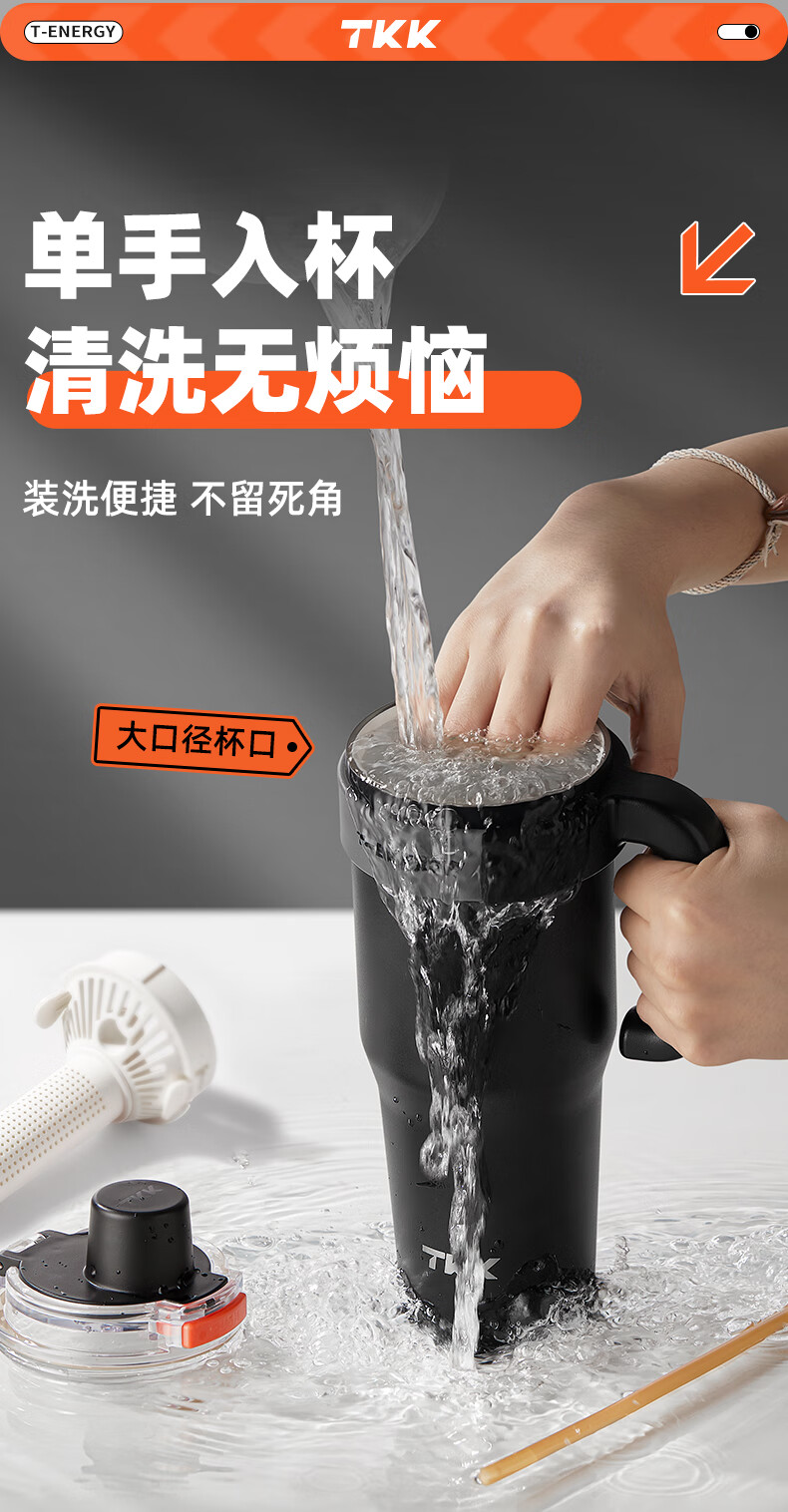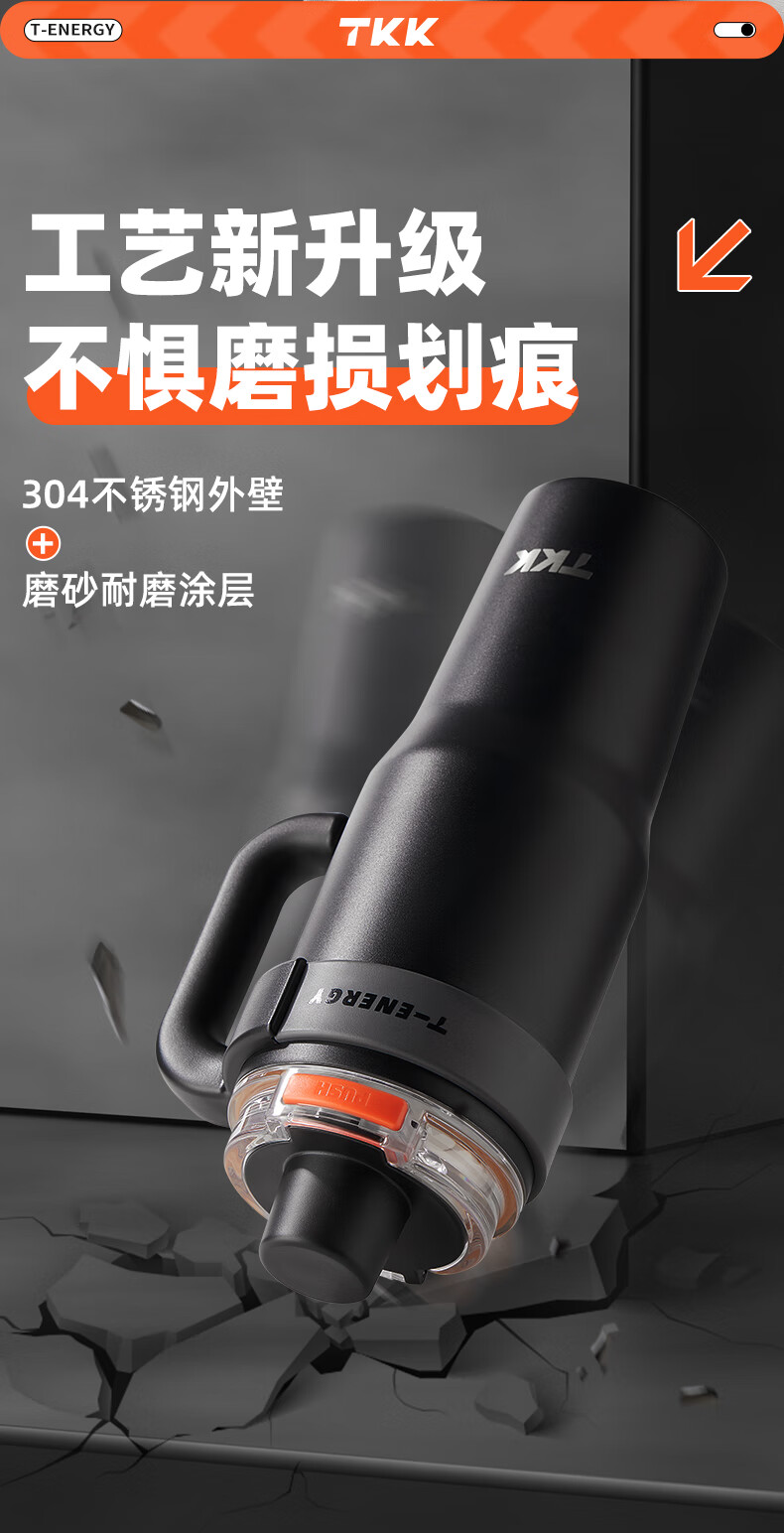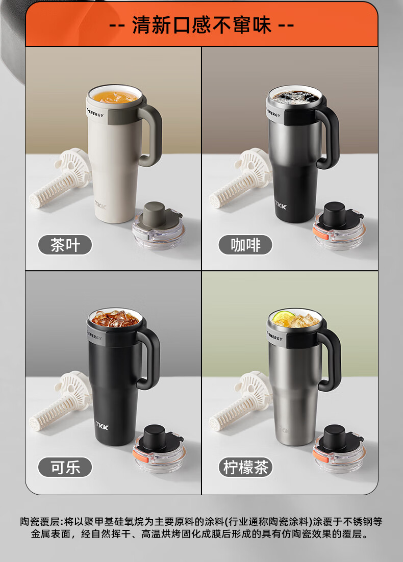 TKK 保温杯男士车载冰霸杯子陶瓷内胆水杯保冷巨无霸茶水分离杯 TKK2032 1200ML 霞光蓝(单位:个)
