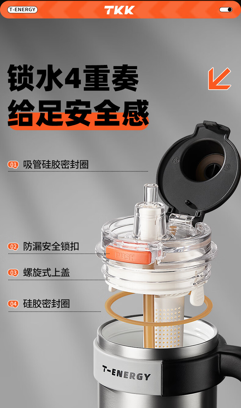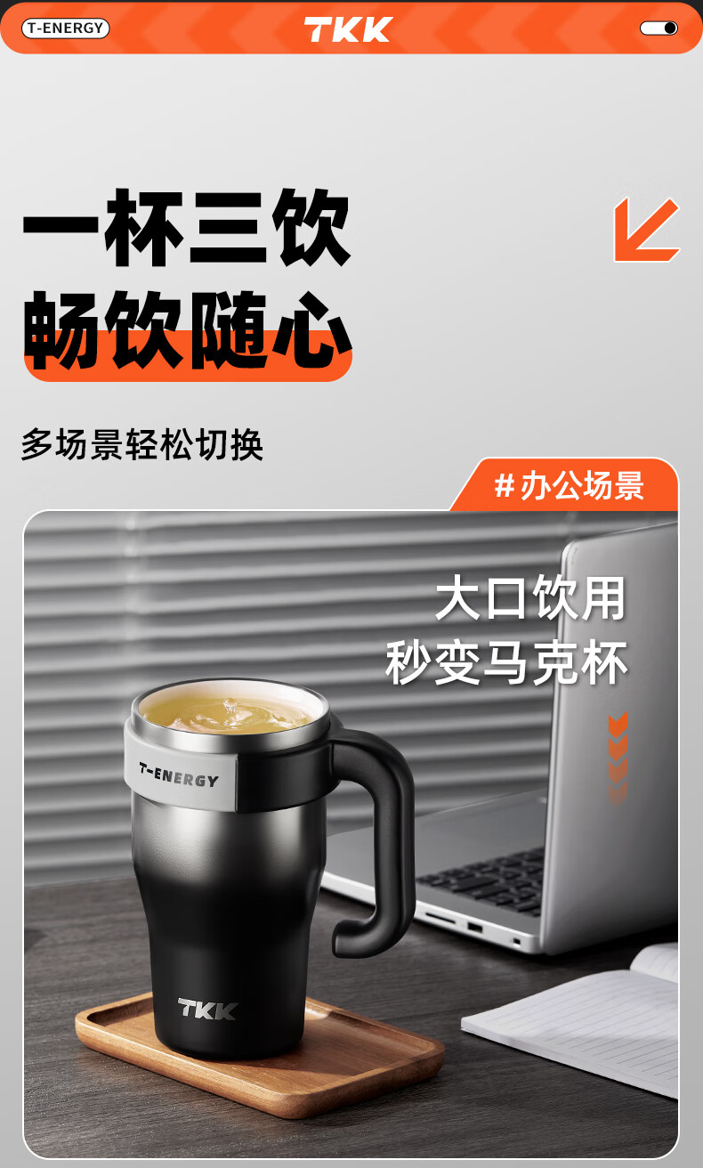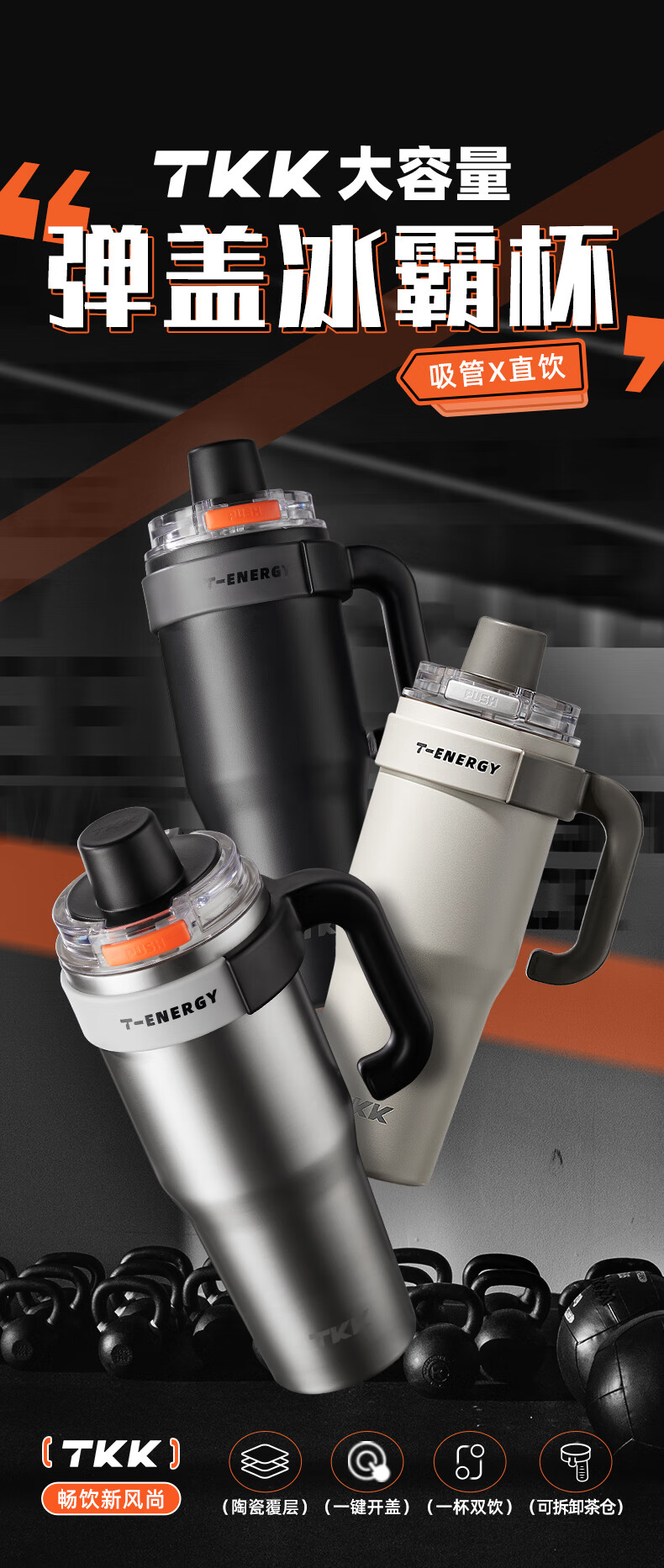 TKK 保温杯男士车载冰霸杯子陶瓷内胆水杯保冷巨无霸茶水分离杯 TKK2032 1200ML 霞光蓝(单位:个)