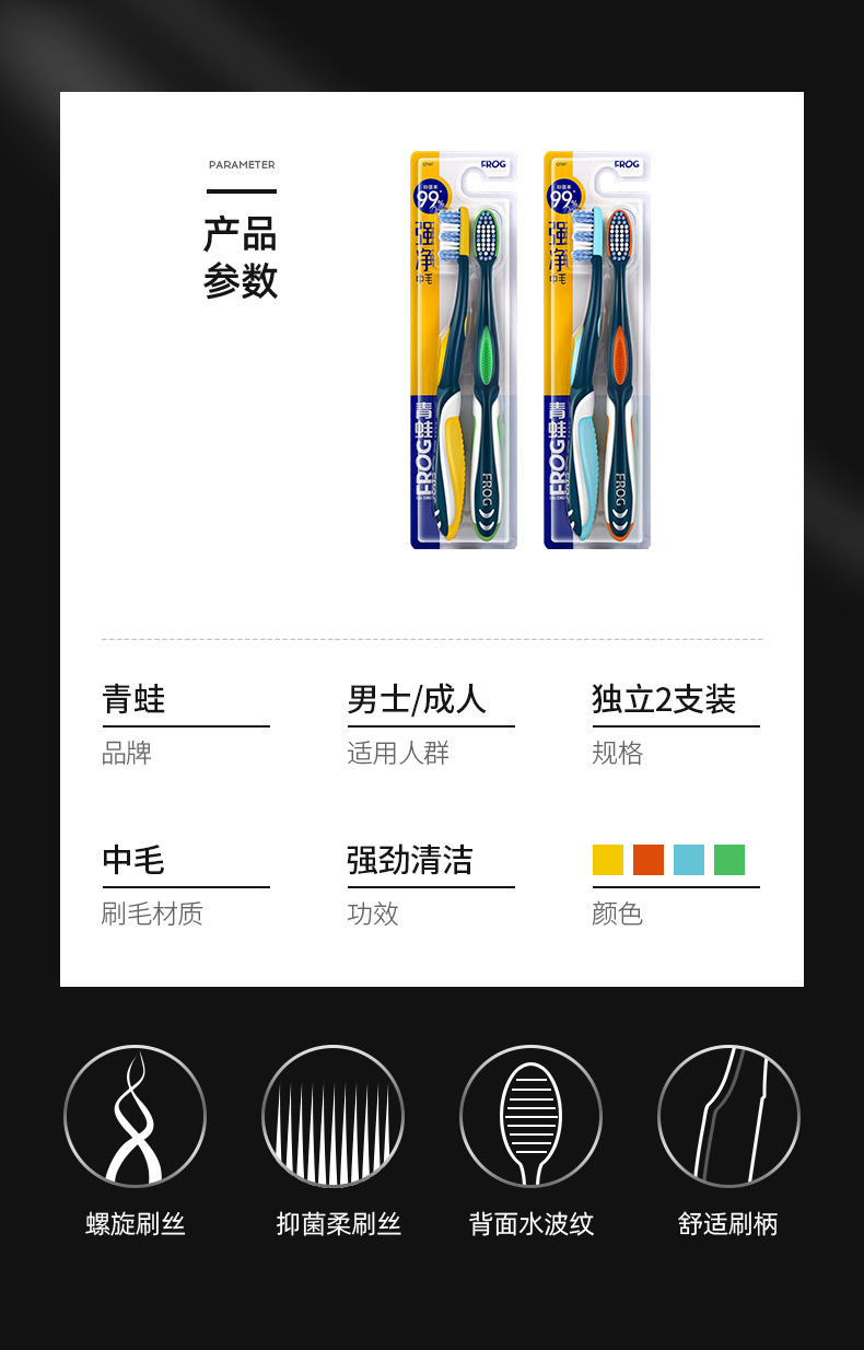 青蛙成人套装系列A 987牙刷*2+ 青蛙清新净齿牙膏GH962*1(单位:套) 混色