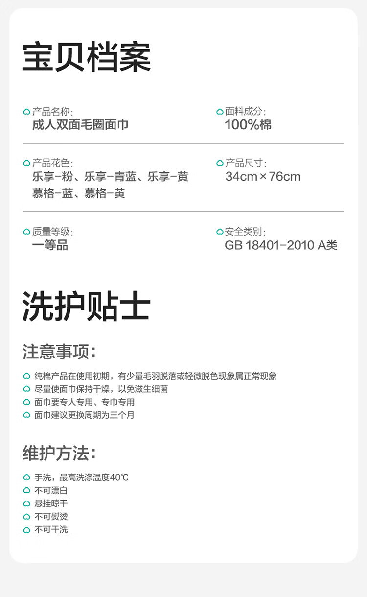 全棉时代 成人双面毛圈面巾 乐享系列 34*76cm 慕格蓝(单位:条)