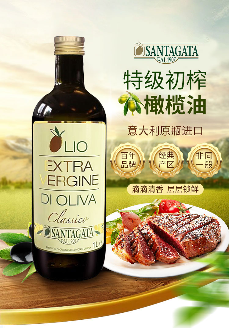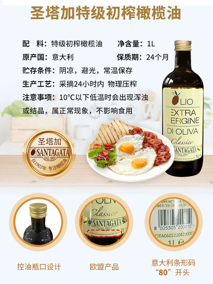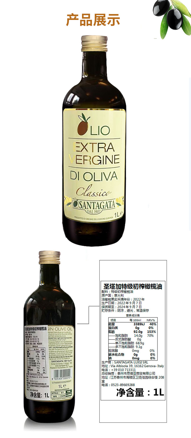 圣塔加 意大利原瓶进口 特级初榨橄榄油礼盒装 1L*2瓶 混色(单位:盒)