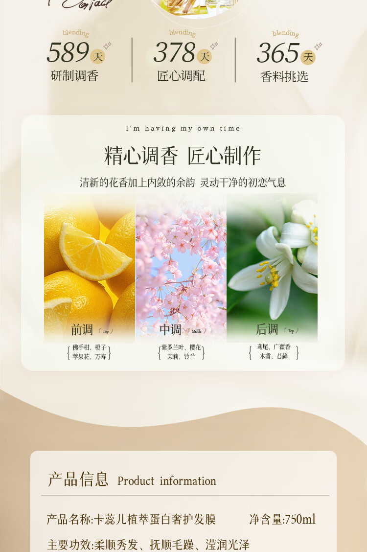 卡蕊儿 植萃蛋白顺滑洗发露 750ml/瓶 米黄