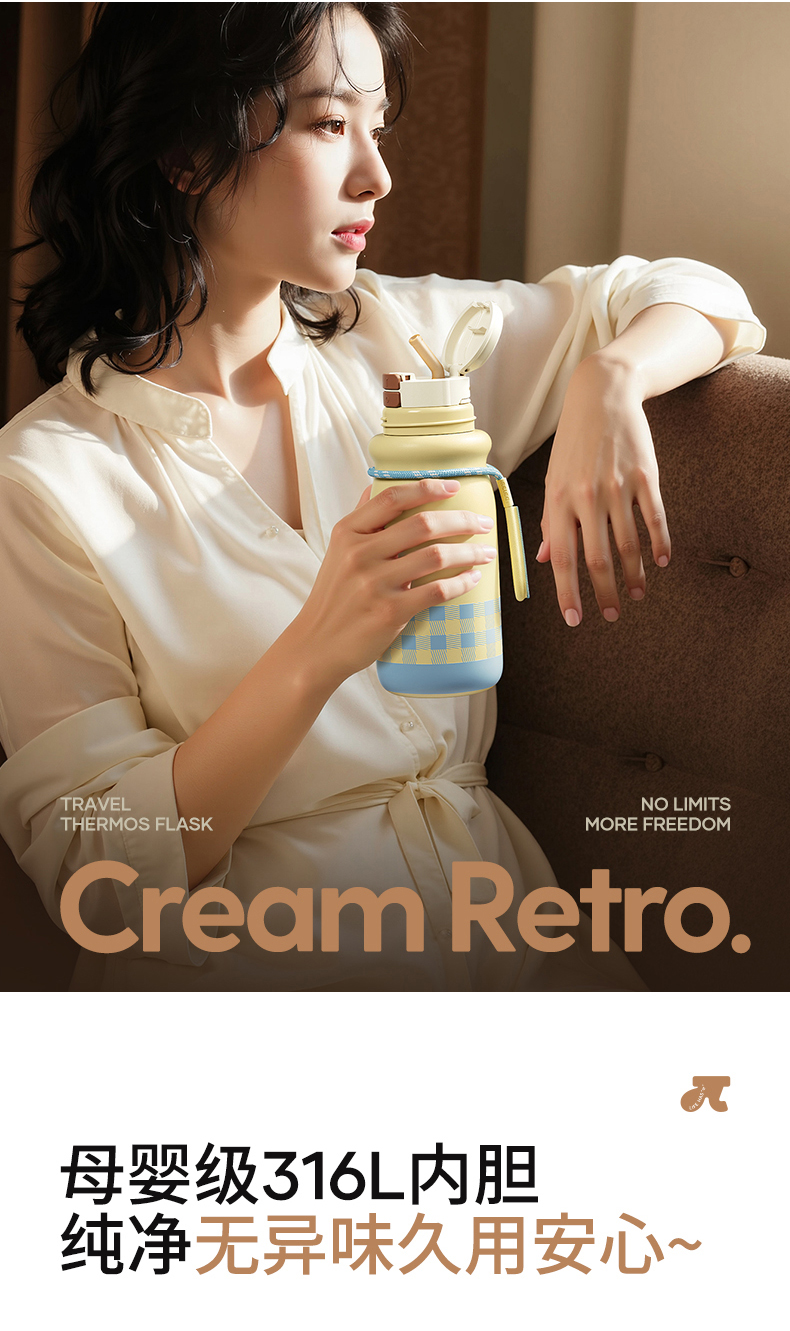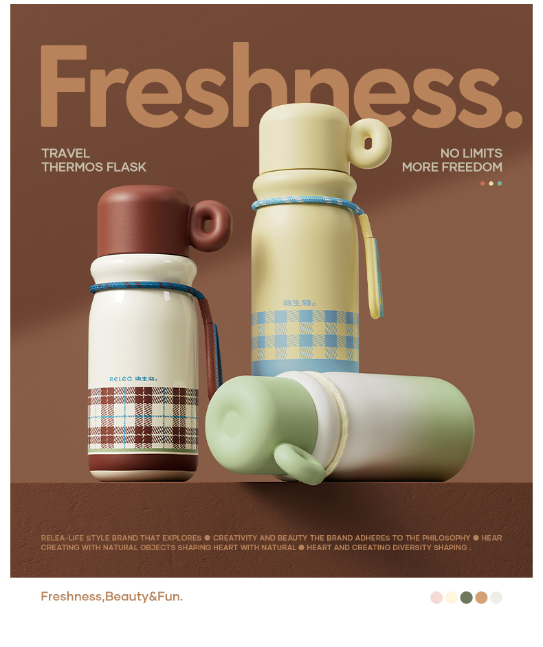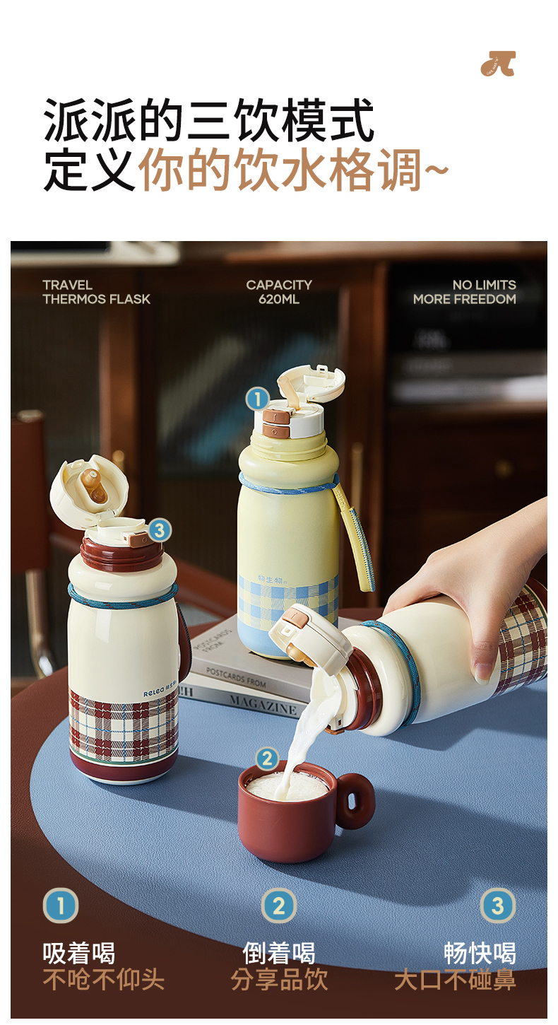 物生物(RELEA) 派派保温杯 JV012549-0620-HS00 620ML 午后柏林格纹红(单位:个)