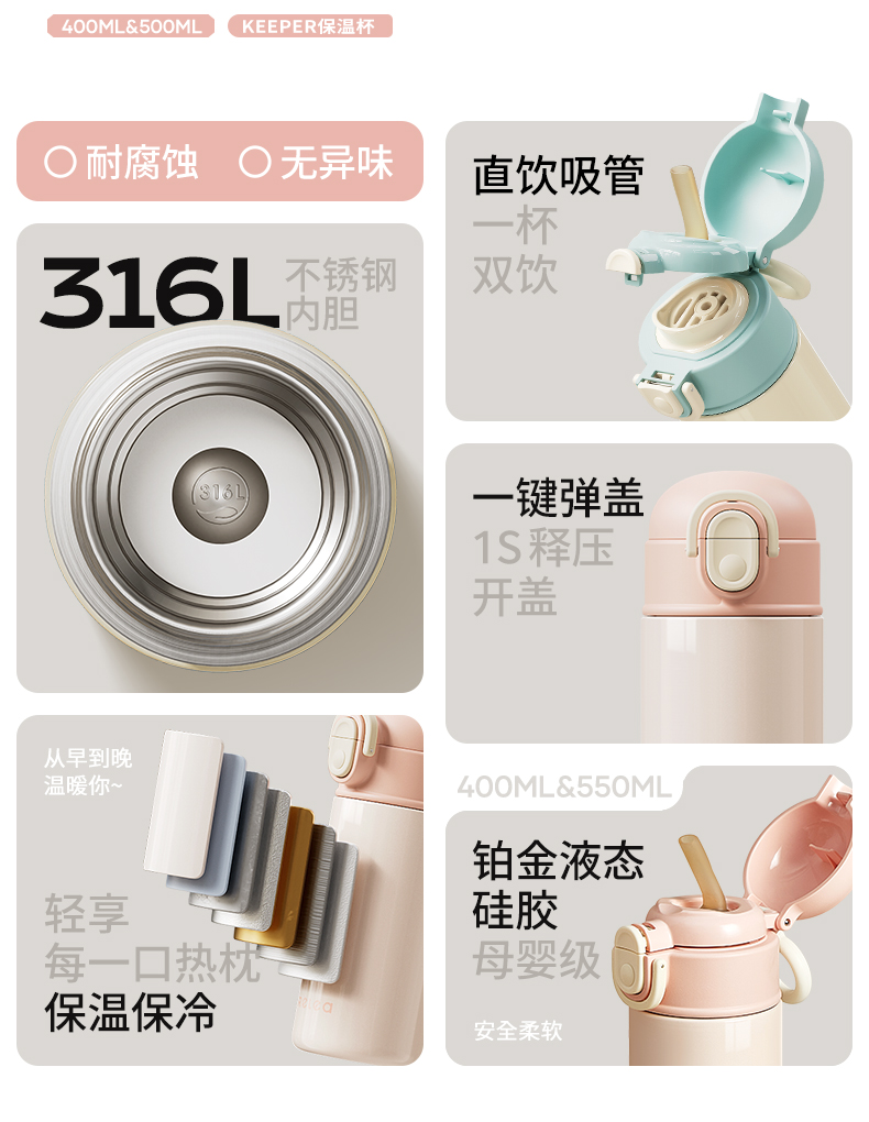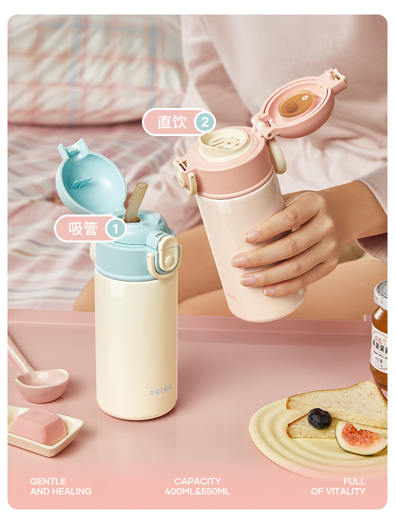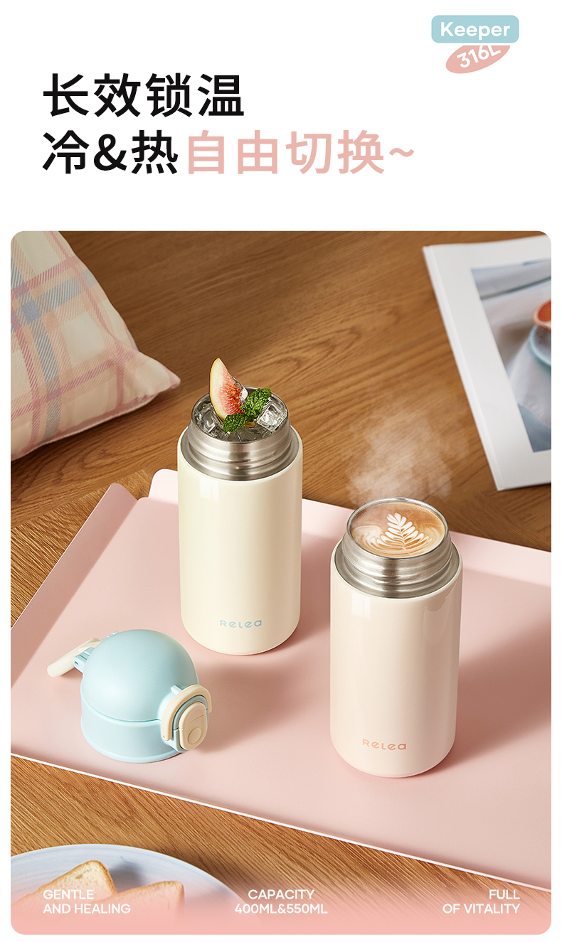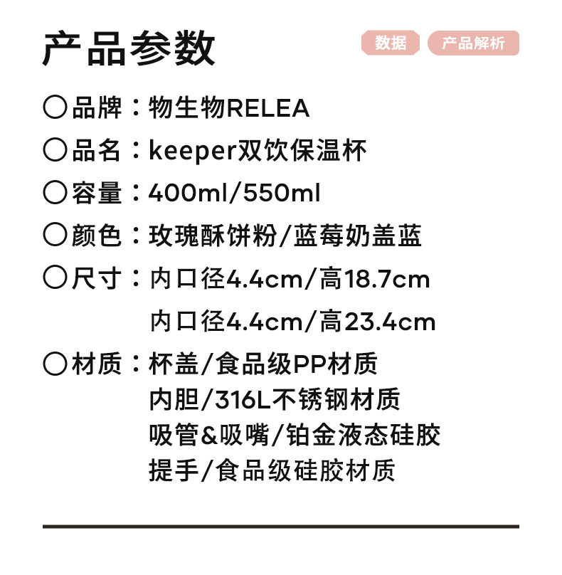 物生物(RELEA) KEEPER双饮保温杯 JV012557-0550-LS00 550ML 蓝莓奶盖蓝(单位:个)
