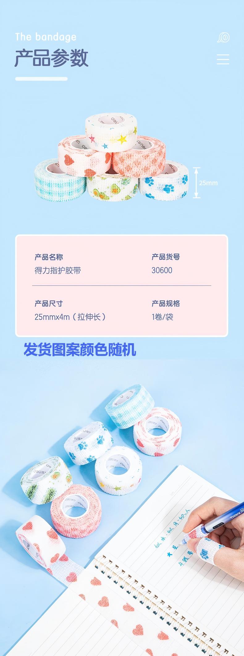 得力(deli) 护指自粘带 30600 25mm*4m(3卷装) 混色(单位:袋)
