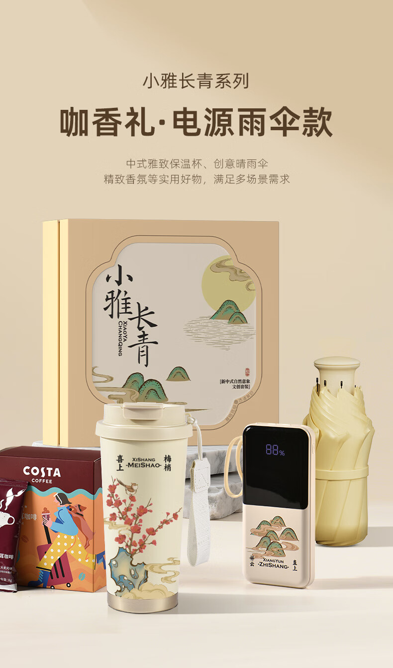 清朴堂 小雅长青系列 咖香礼电源雨伞款 290*290*105mm(礼盒装) 混色(单位:个)