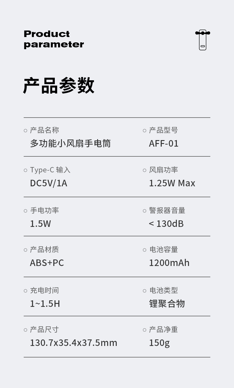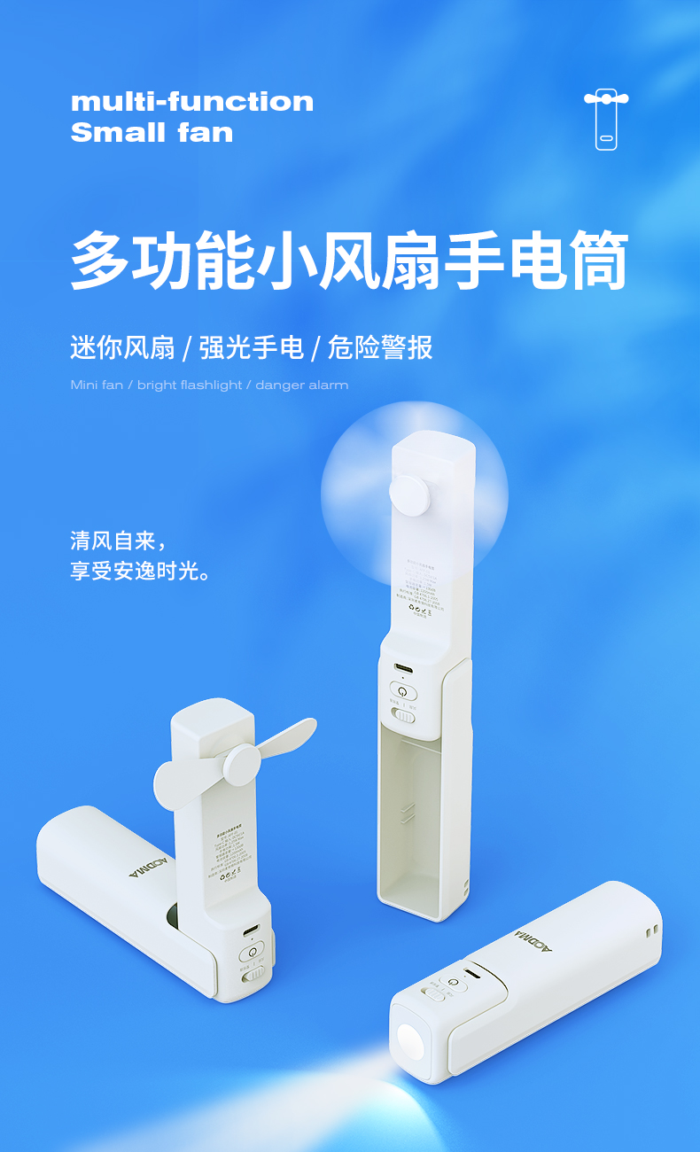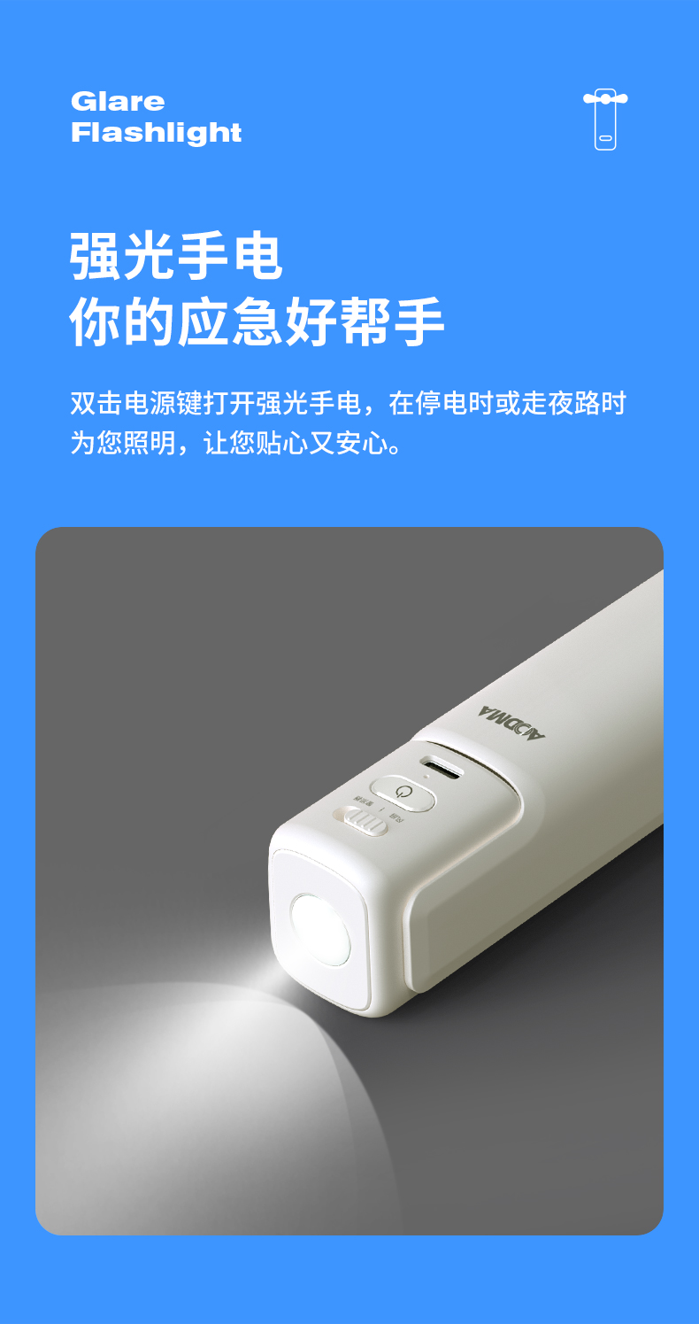 澳得迈(AODMA) 多功能小风扇手电筒 AFF-01 重量150g 白色(单位:个)