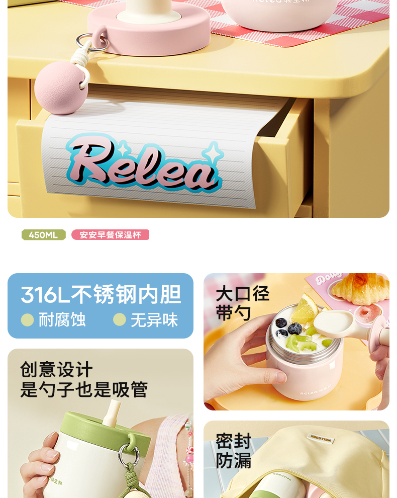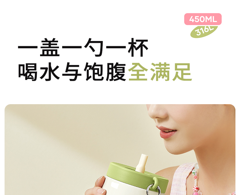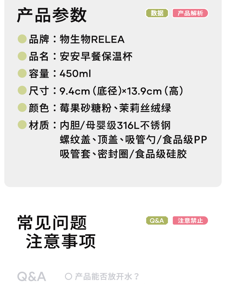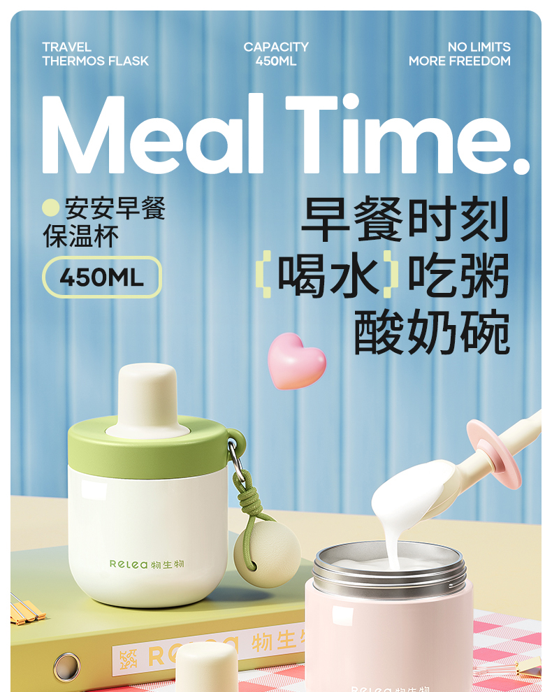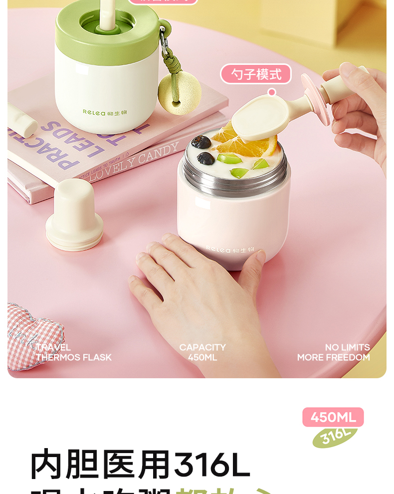物生物(RELEA) 安安早餐保温杯 JV012544-0450-VS00 450ML 茉莉丝绒绿(单位:个)