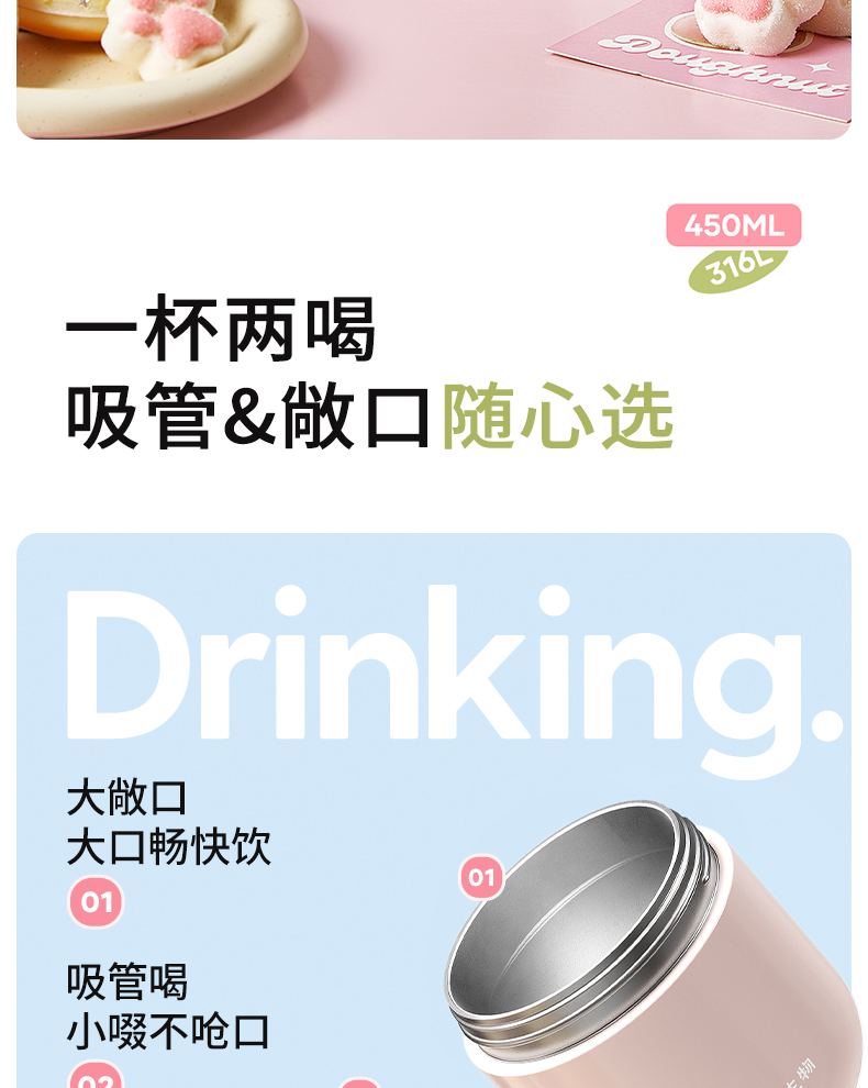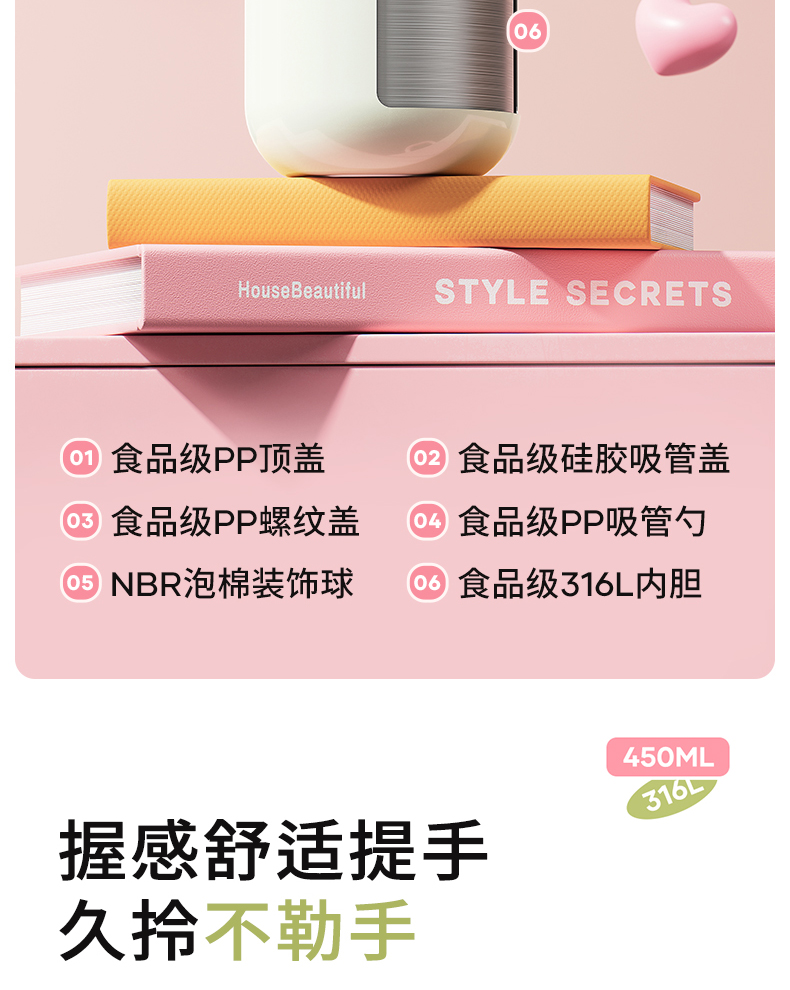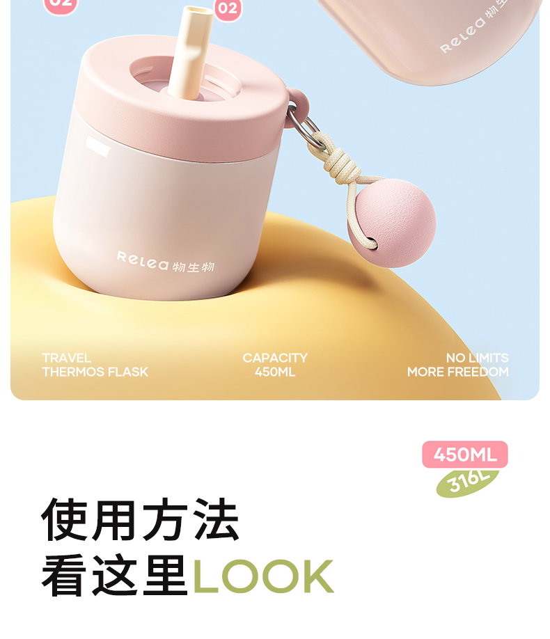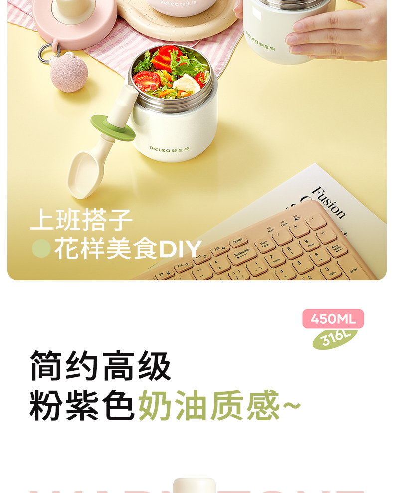 物生物(RELEA) 安安早餐保温杯 JV012544-0450-VS00 450ML 茉莉丝绒绿(单位:个)